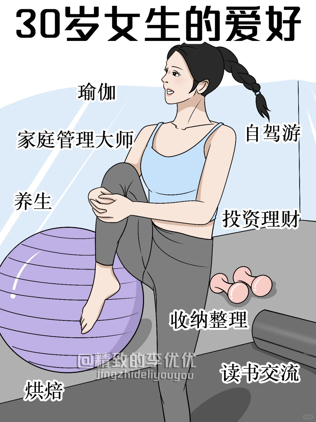 30岁的女生喜欢瑜伽、自驾游、是家庭管理大师等等;