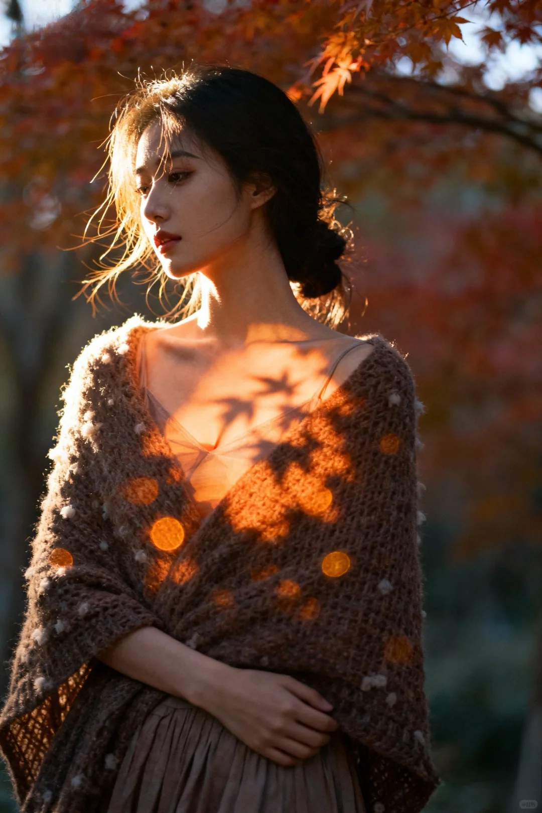 當風掀起披肩流蘇,髮梢捲起碎鑽般星芒,定格的不僅是電影感構圖,更是薄暮與體溫交織的永恆。所有溫暖都朝她聚焦,所有寂寥都向虛景消融。