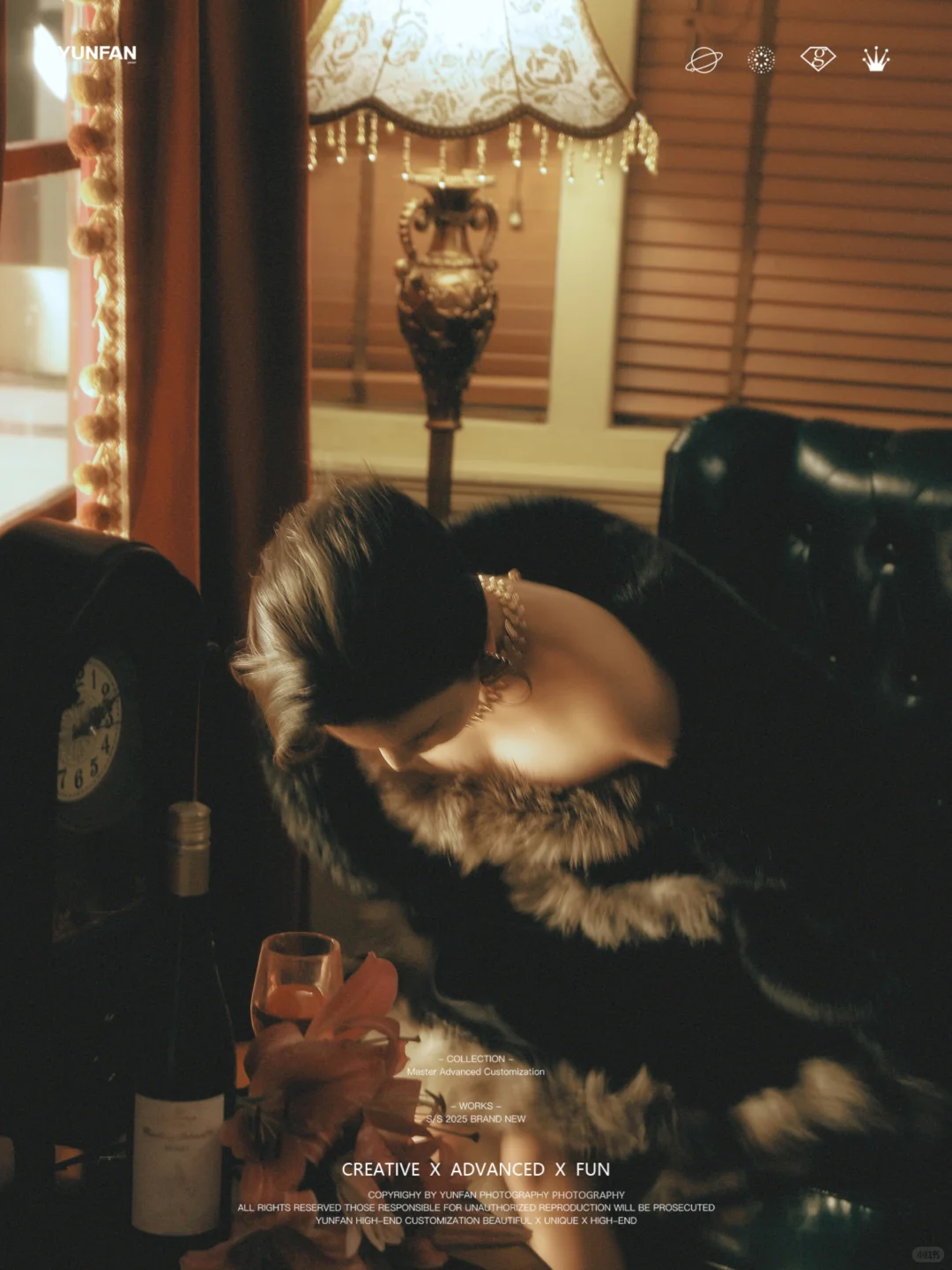 🕯️暖光漫洒,皮草裙衬得人贵气又慵懒,