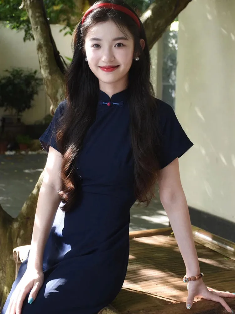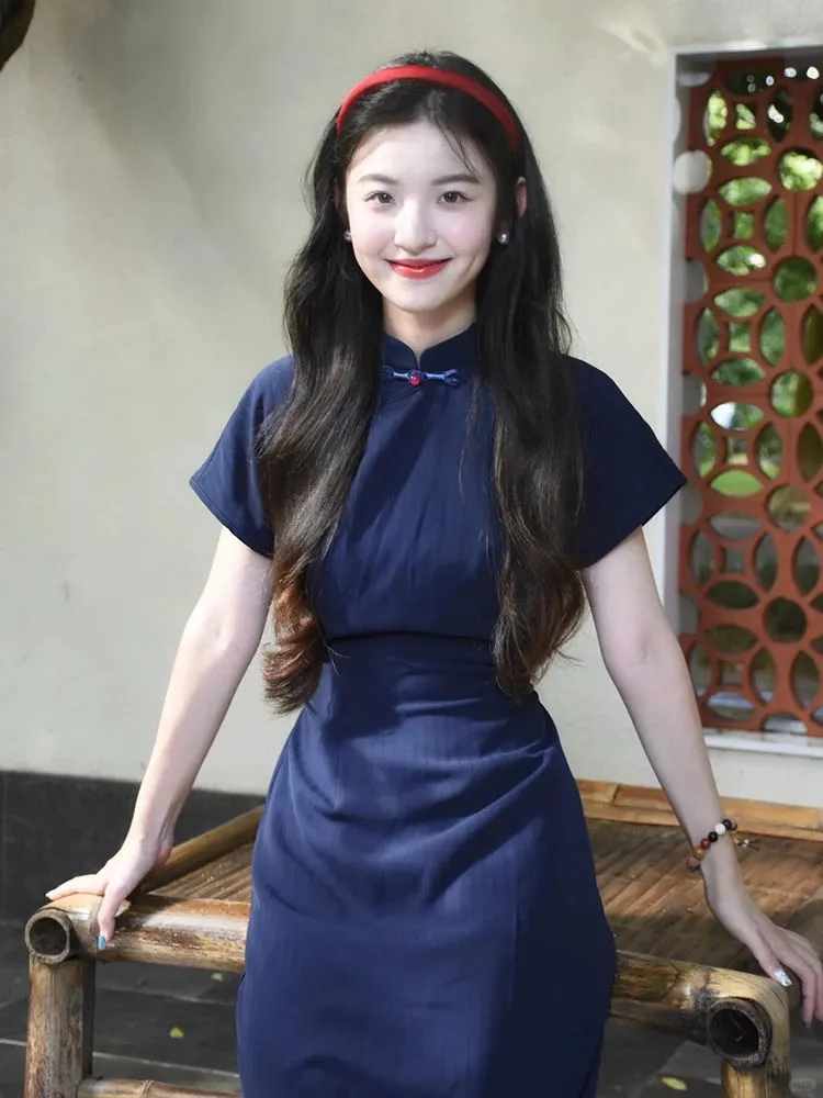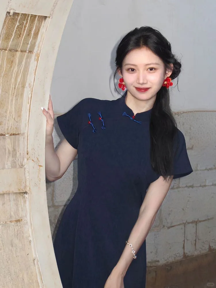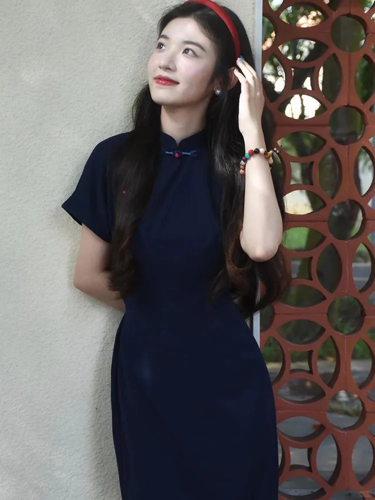 这件藏蓝旗袍简直是复古控的天菜!