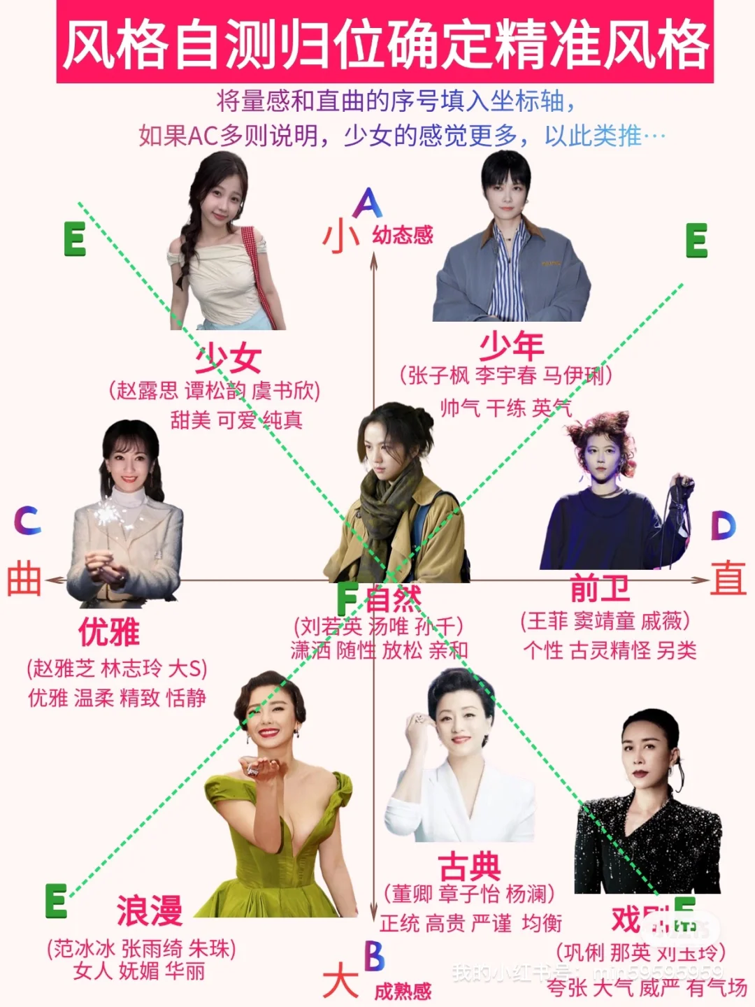 我们每个人都会因自己的长相、身材、神态等与生俱来的元素形成不同的人体“型”特征,判断出我们个人的“型”之后,再挑选衣服时选择与我们“型”匹配的衣服然后结合自己的喜好去调和比例,达到外在与内在的平衡,你就是最美女神👸