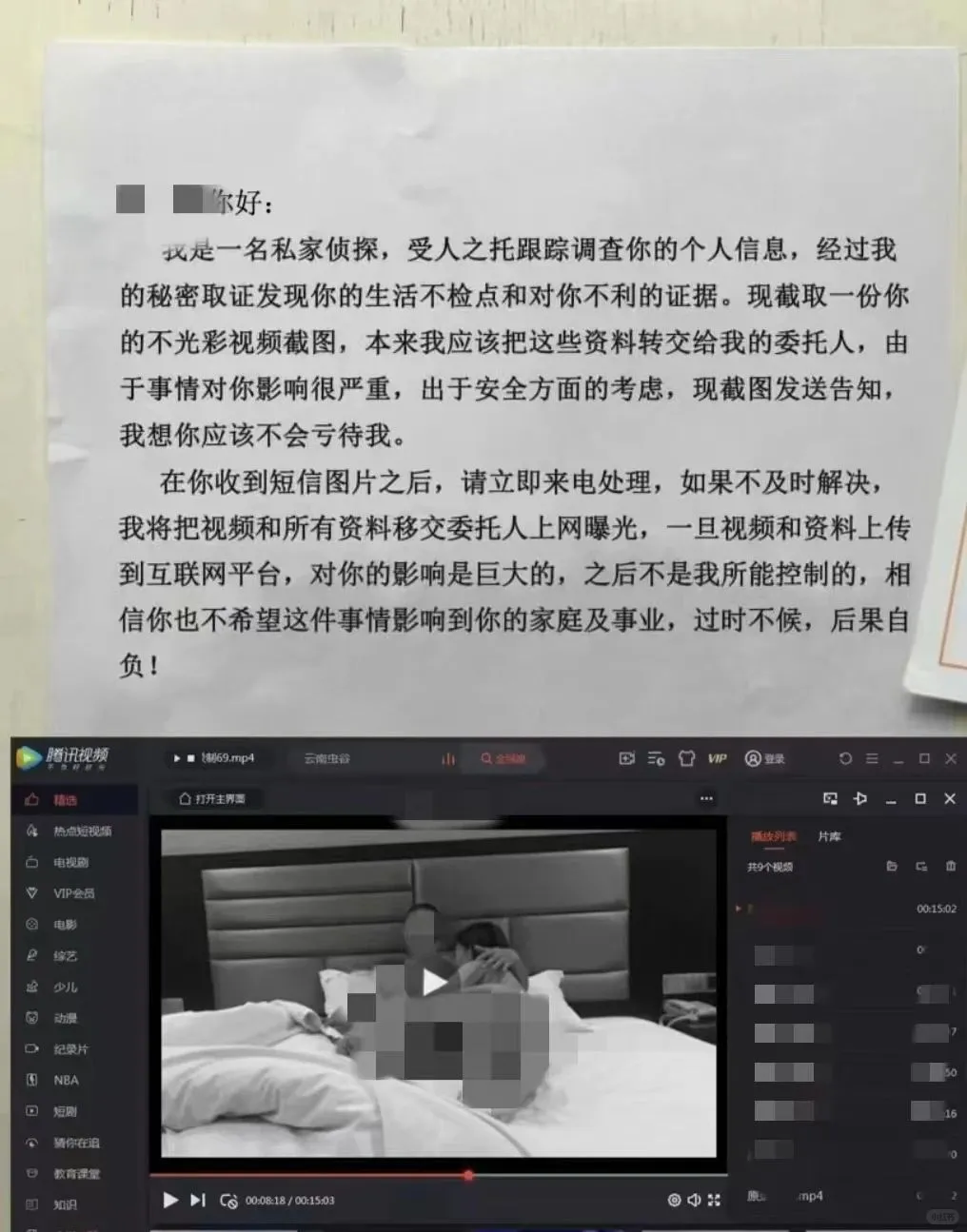 事发当天,陈某收到一条短信,里面的图片显示他和一名女子在房间的私密照片,对方让他尽快跟一个手机号取得联系。随后声称如果想解决这个问题,不想让这张照片公之于众就得拿出50万做“封口费”,过时不候!