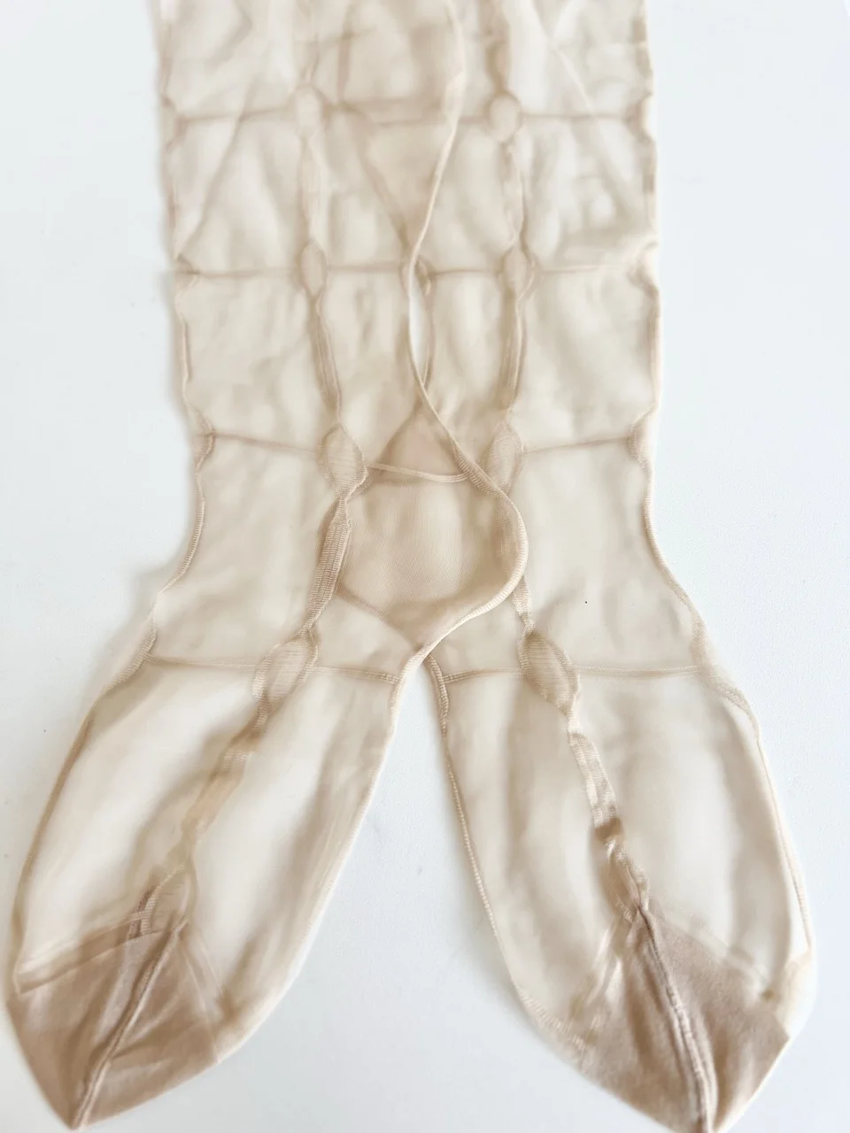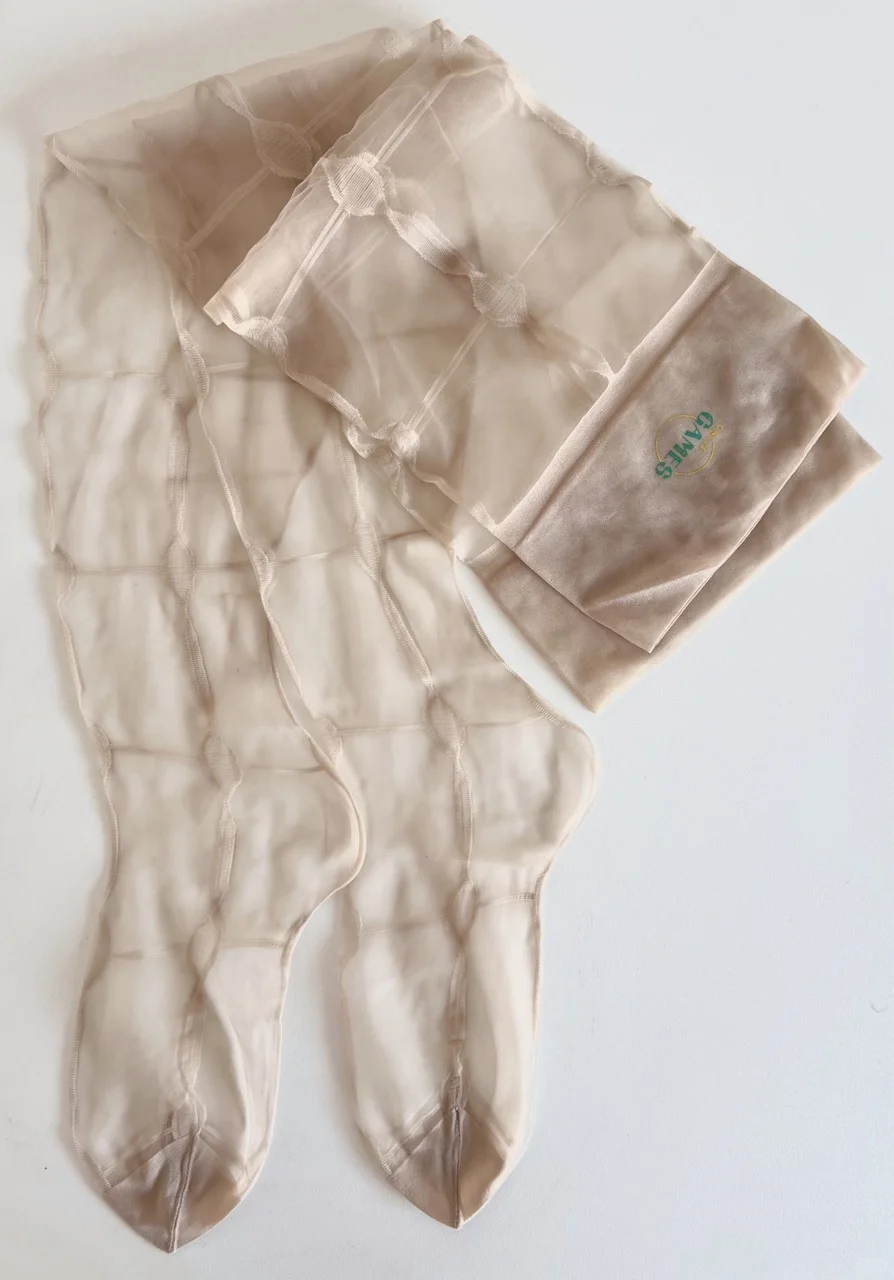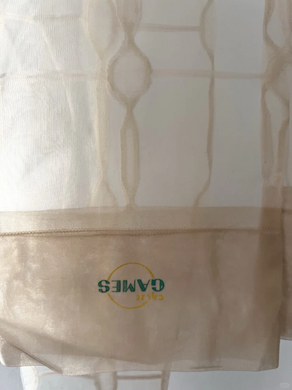 这款 “Calze GAMES” 的古董丝袜,是意大利在 1950–1960 年代出产的一款非常独特的纯尼龙无弹力丝袜