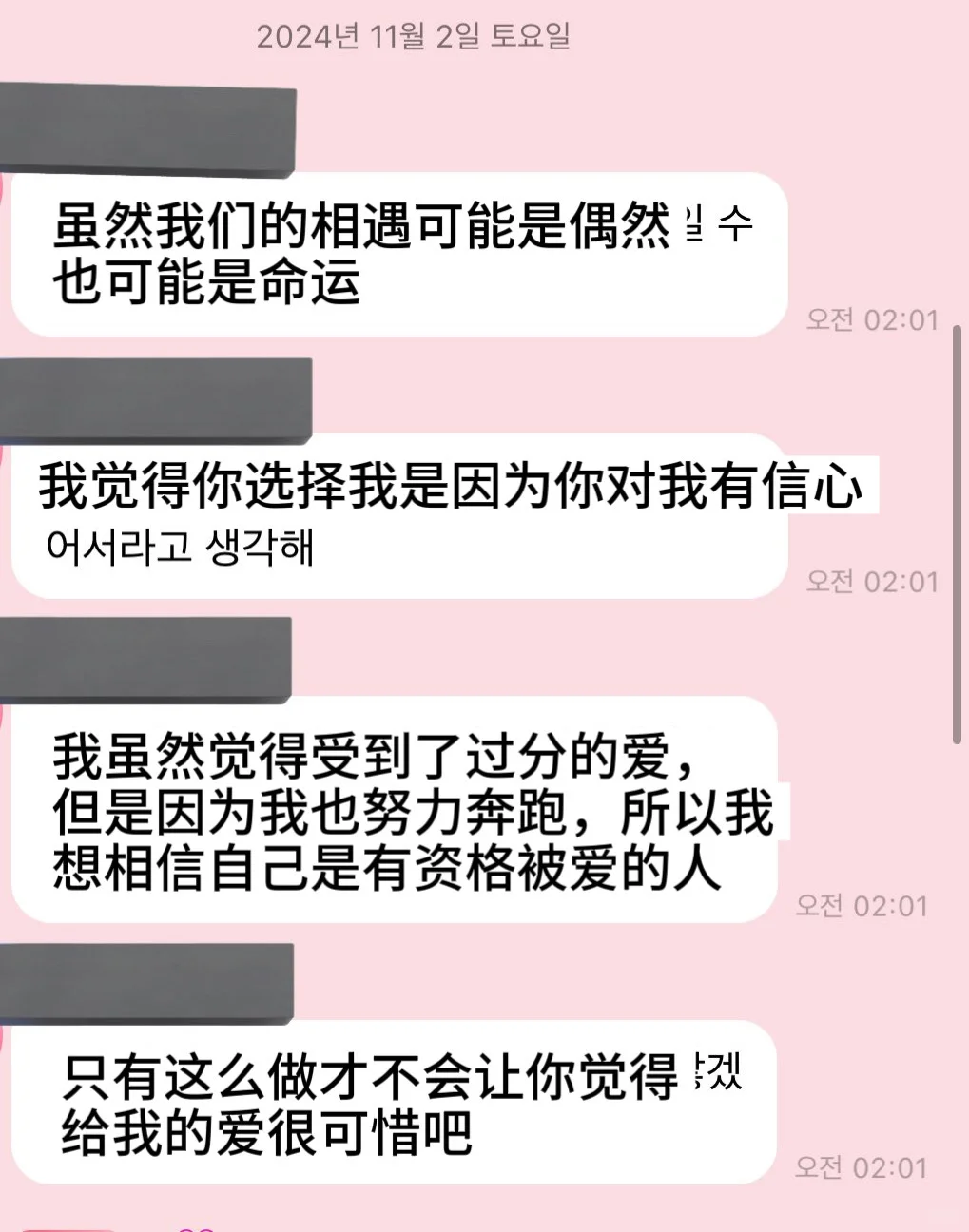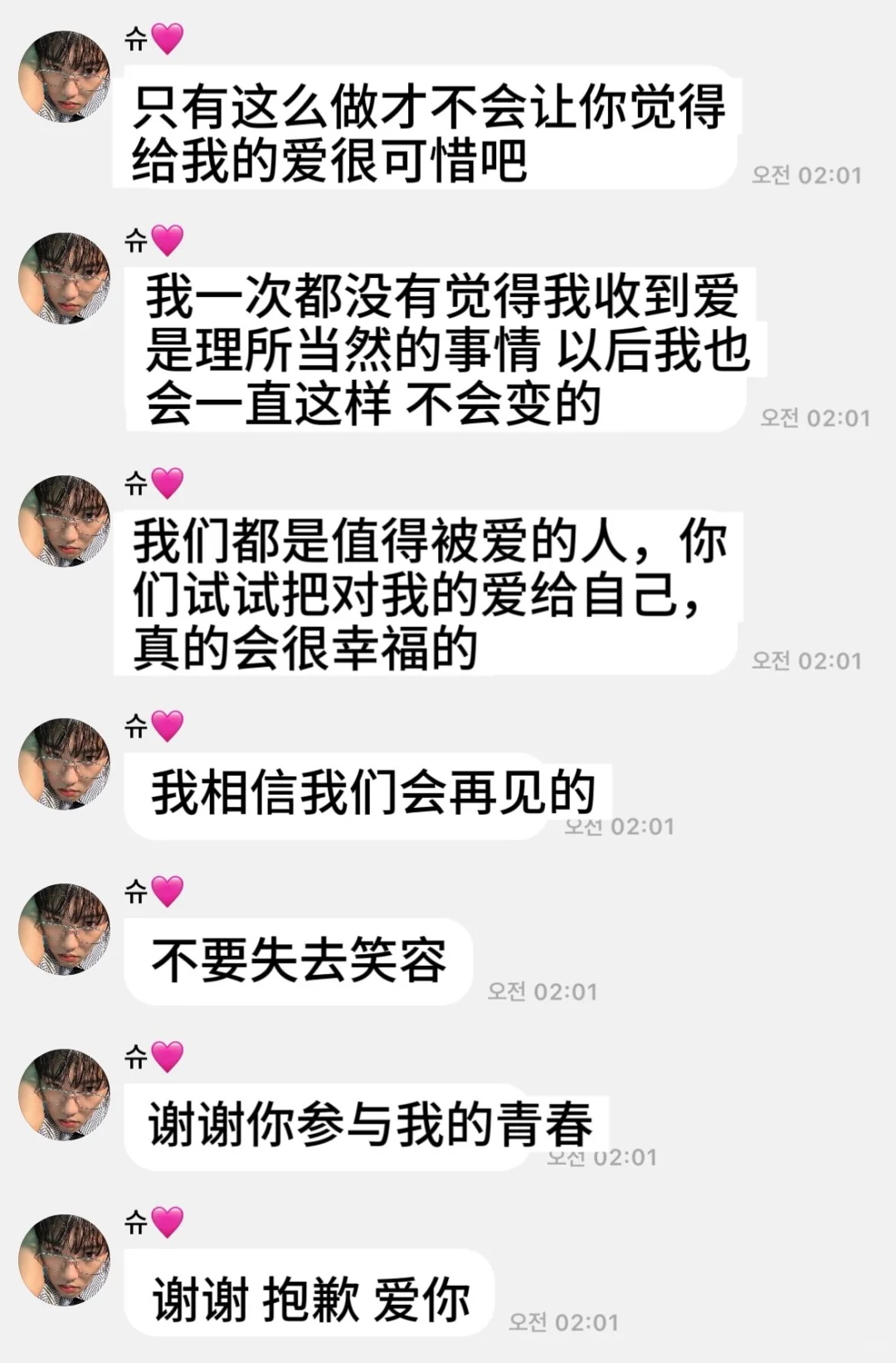 背景是这位韩女生日的时候收到了泡泡的券,定了这位她完全不认识的男爱豆的泡泡,定了后发现经常被回复,就一直续订,有200多天,但去年年末突然发完图中的内容就消失了