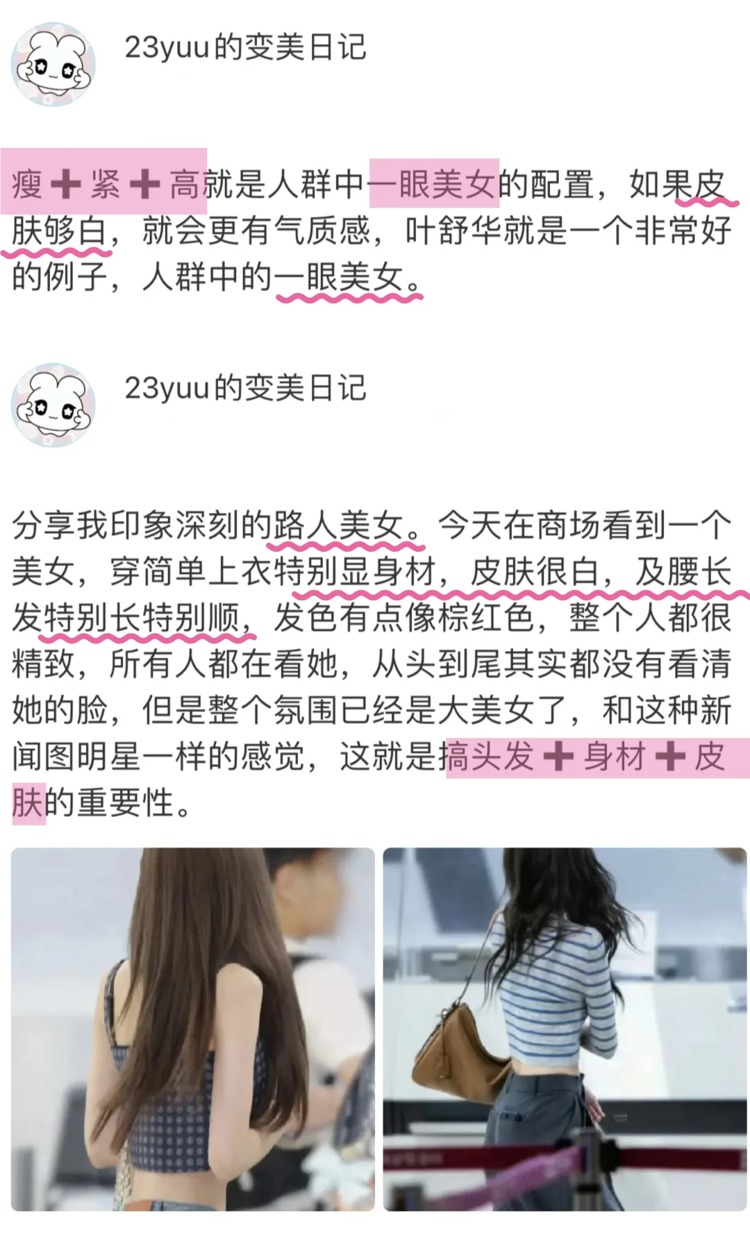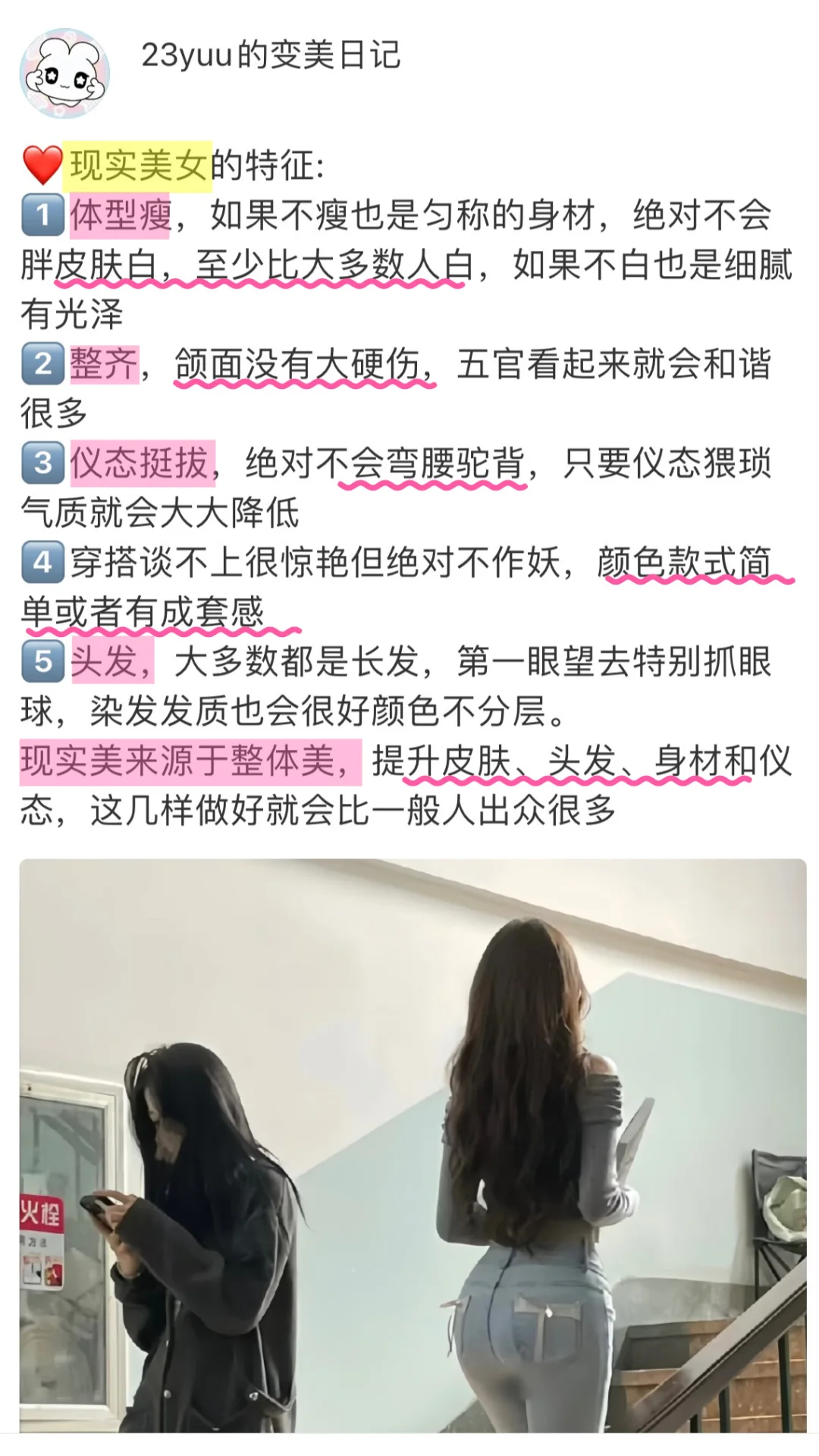 美女的框架就是肤色均匀+头发茂密+身薄+体态挺拔,皮肤白是加分项。