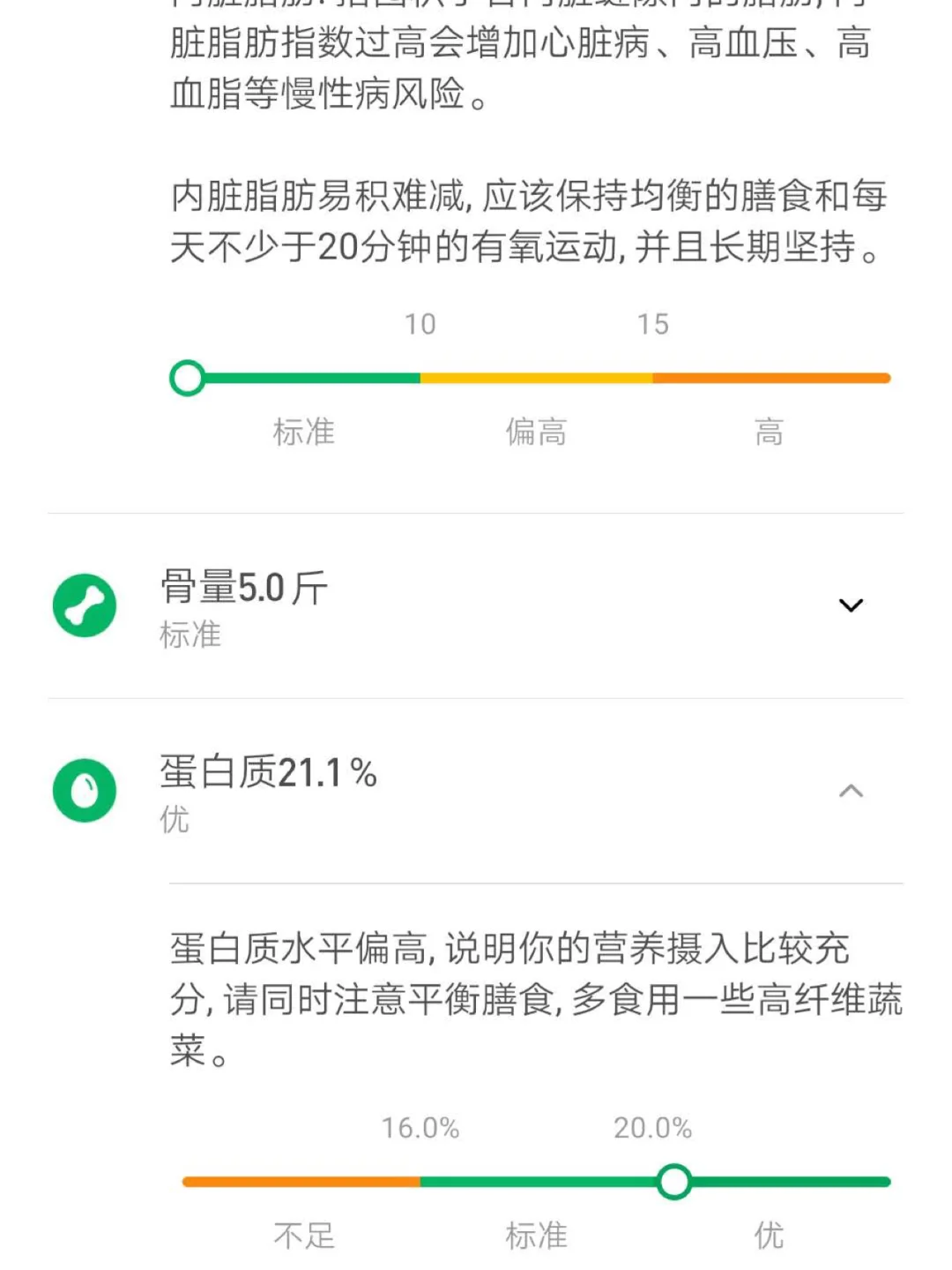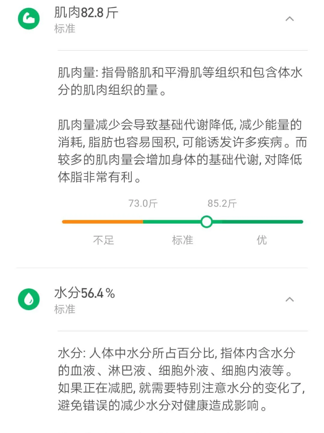 先上我历史上最重的时候的体脂肌肉等完整数据给你们证实,可以看到我的蛋白质和肌肉指数比平均水平要高很多,也就是证明我确实是吃得多,但BMI才16.8,按科学标准应该算是很瘦,更生动地说,我一个巴掌横过来可以遮住自己的腰(图三),但是也可以看到我最胖的时候腿粗(图二和三)也不是脂肪就是肌肉明显,所以腿粗,后来经过了好多年,慢慢腿细了之后就到了日常100斤左右(图1和最后),对我178身高来说其实是偏瘦了,但是因为之前想把腿变细,然后减肥又不可能单个部位,所以只能先让腿细了整体匀称之后,现在再慢慢调整增肥。当然增肥和减肥一样不可以暴饮暴食,也不能速成,不然也很伤身体,所以也是一个非常缓慢的过程。