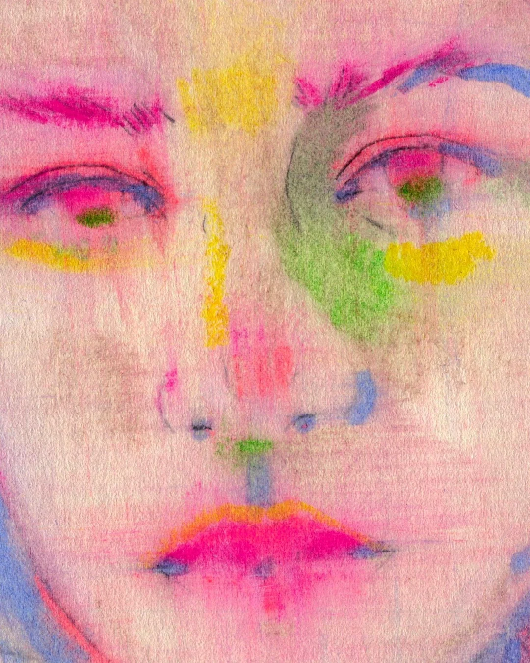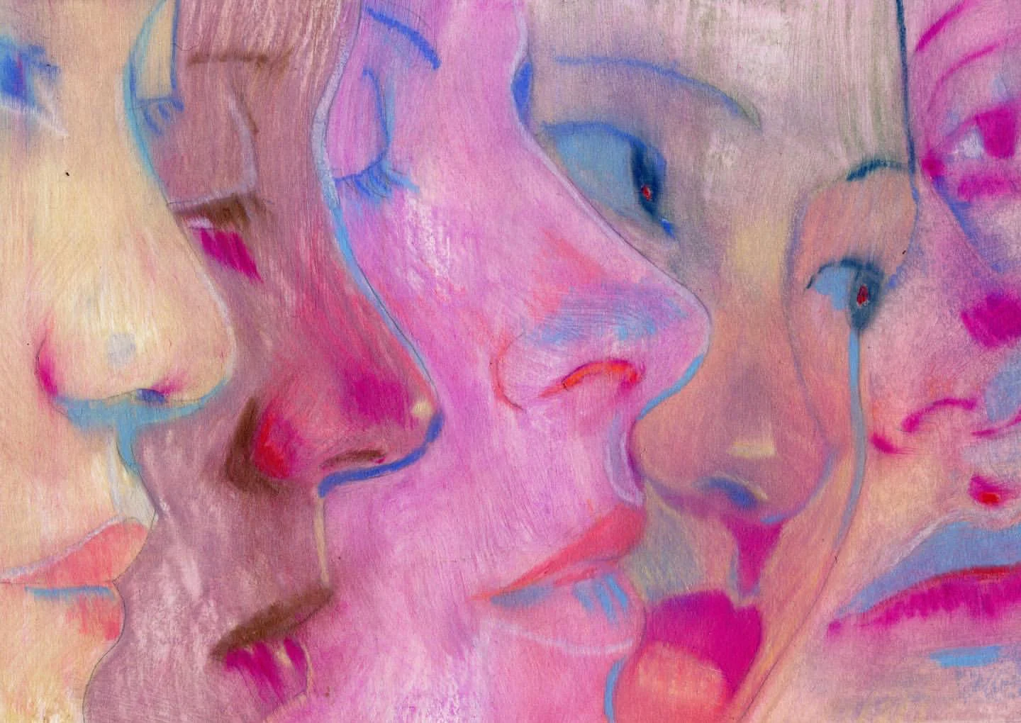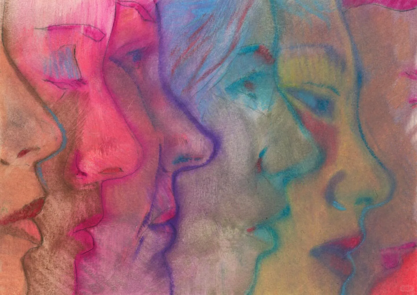 《侧像卷轴》以纸本油画棒的形式,