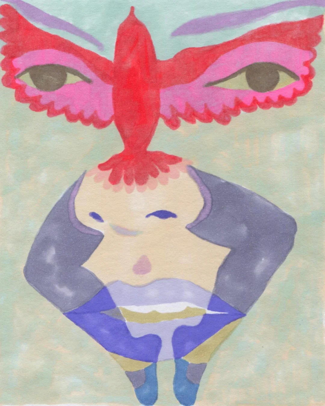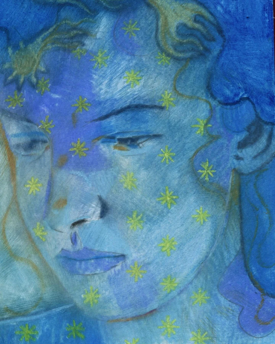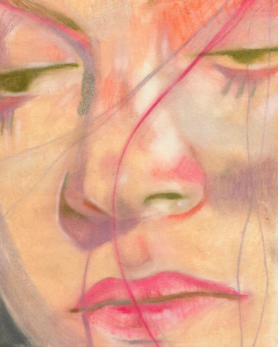 《侧像卷轴》以纸本油画棒的形式,