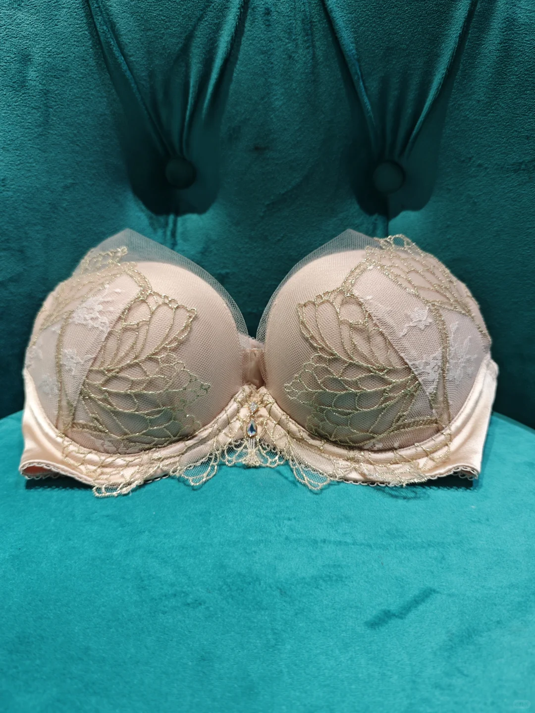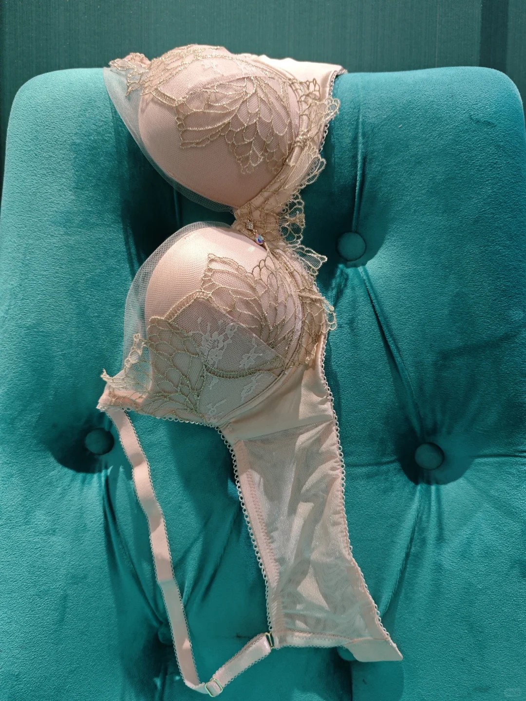 内衣用蕾丝勾勒人鱼尾般的精致花纹,贴合胸部曲线,塑造优雅胸型