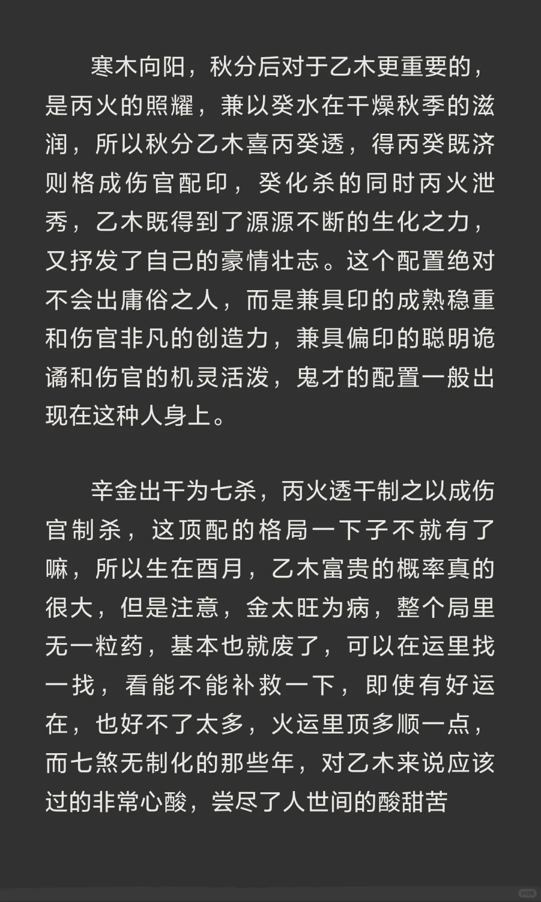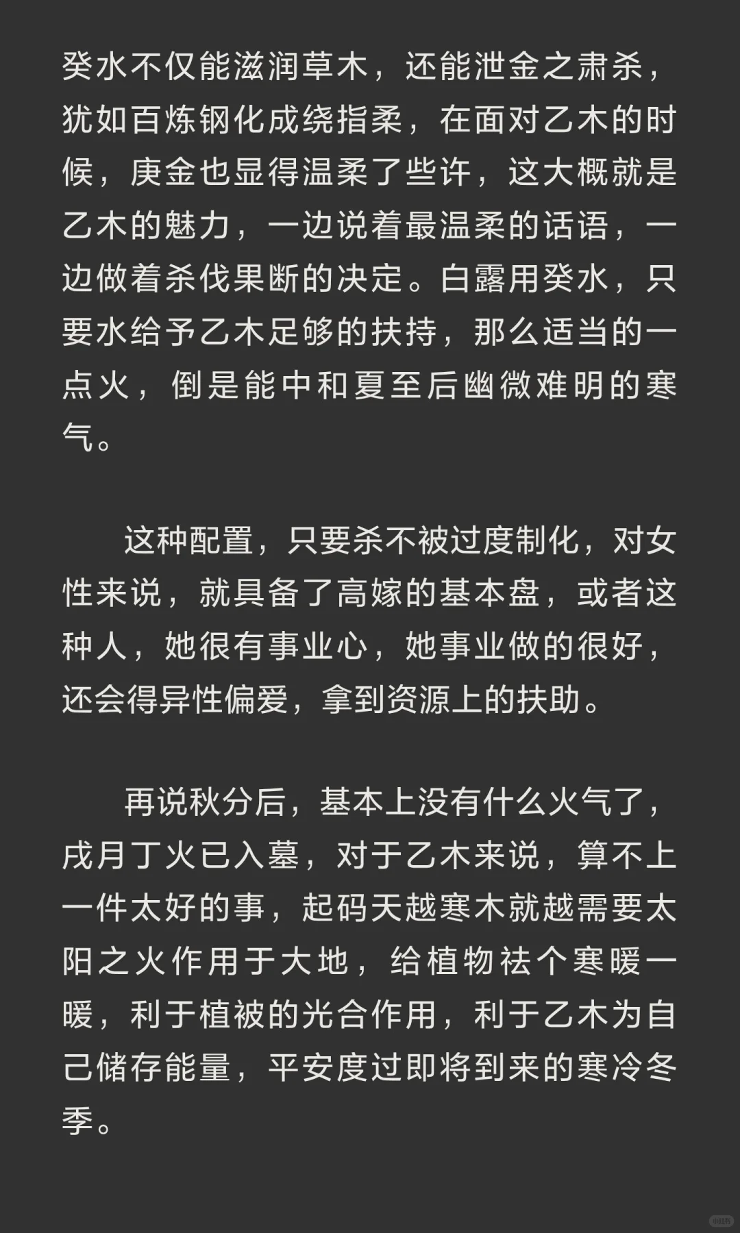 乙木在四季中各具魅力,春天生机勃勃,秋天丹桂飘香。白露秋分期间,癸水和丙火的配合为乙木带来生机与机遇,尤其生在酉月的乙木,既有机遇也有挑战,需把握住才能在人生中所向披靡。