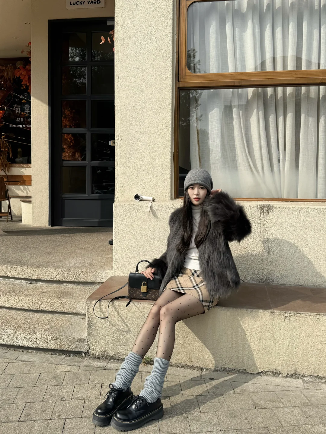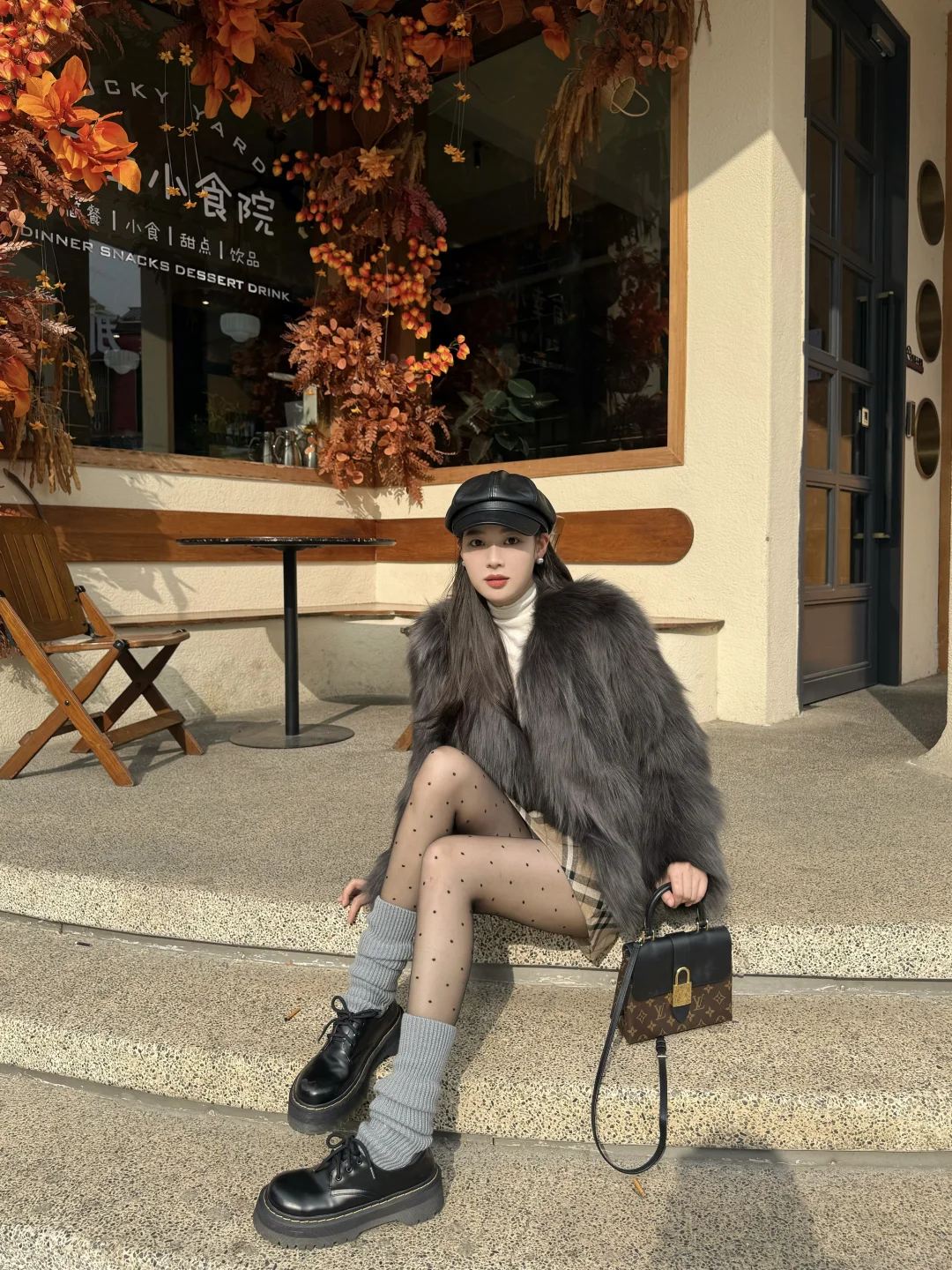 黑丝+过膝靴+百褶裙的组合直接杀疯