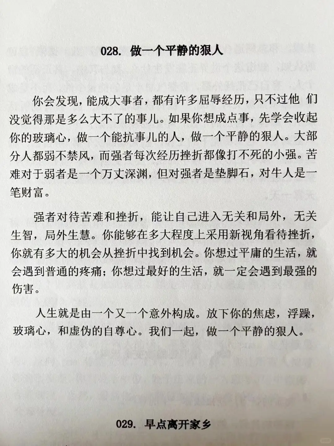 世界上最可怕的事情并不是摔倒在最低谷,而是永远无法摆脱自己的内心纠缠。在这个世界上,除了自己,没有人能够拯救你,也没有人能够帮助你。生命短暂,希望我们都能活得自由自在,过得精彩纷呈。 i