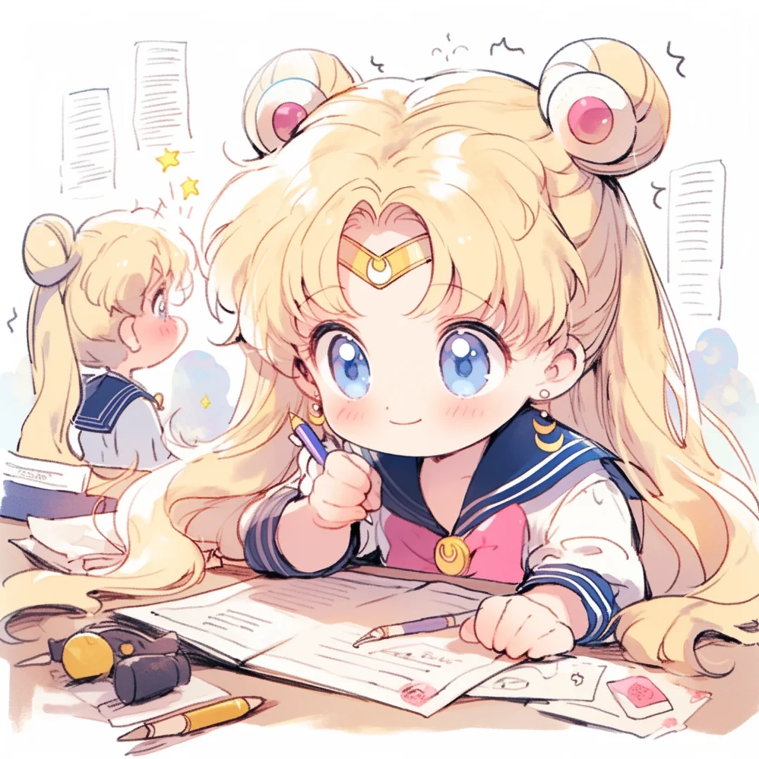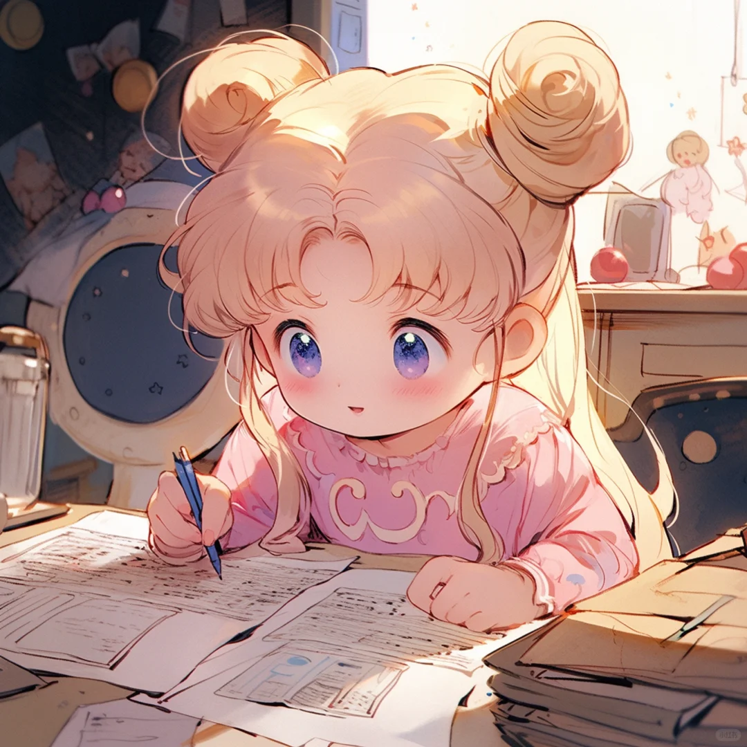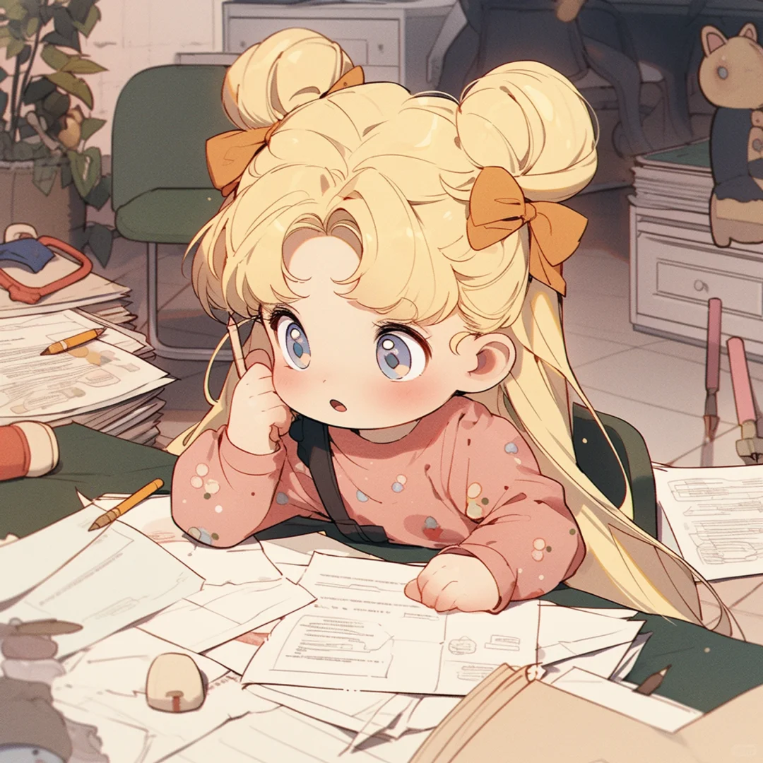 Q版美少女|看报表 画图纸 写试卷 备考 做题