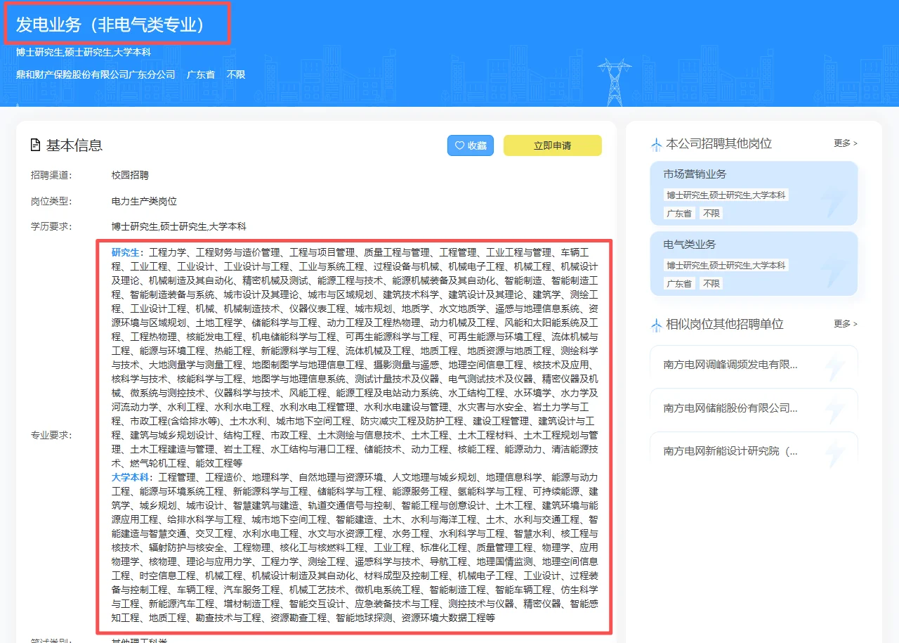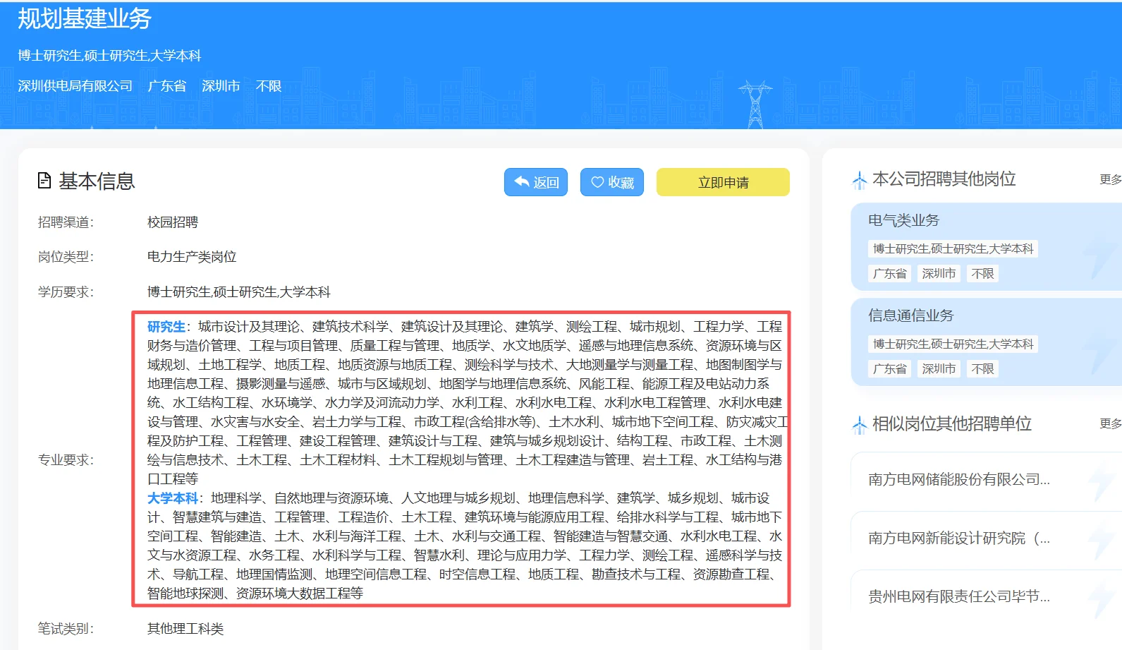 除了规划基建业务,土木工程/建筑学/城乡规划还有部分发电业务(非电气类专业)岗位,和部分配电业务(非电气类专业)岗位若干。
