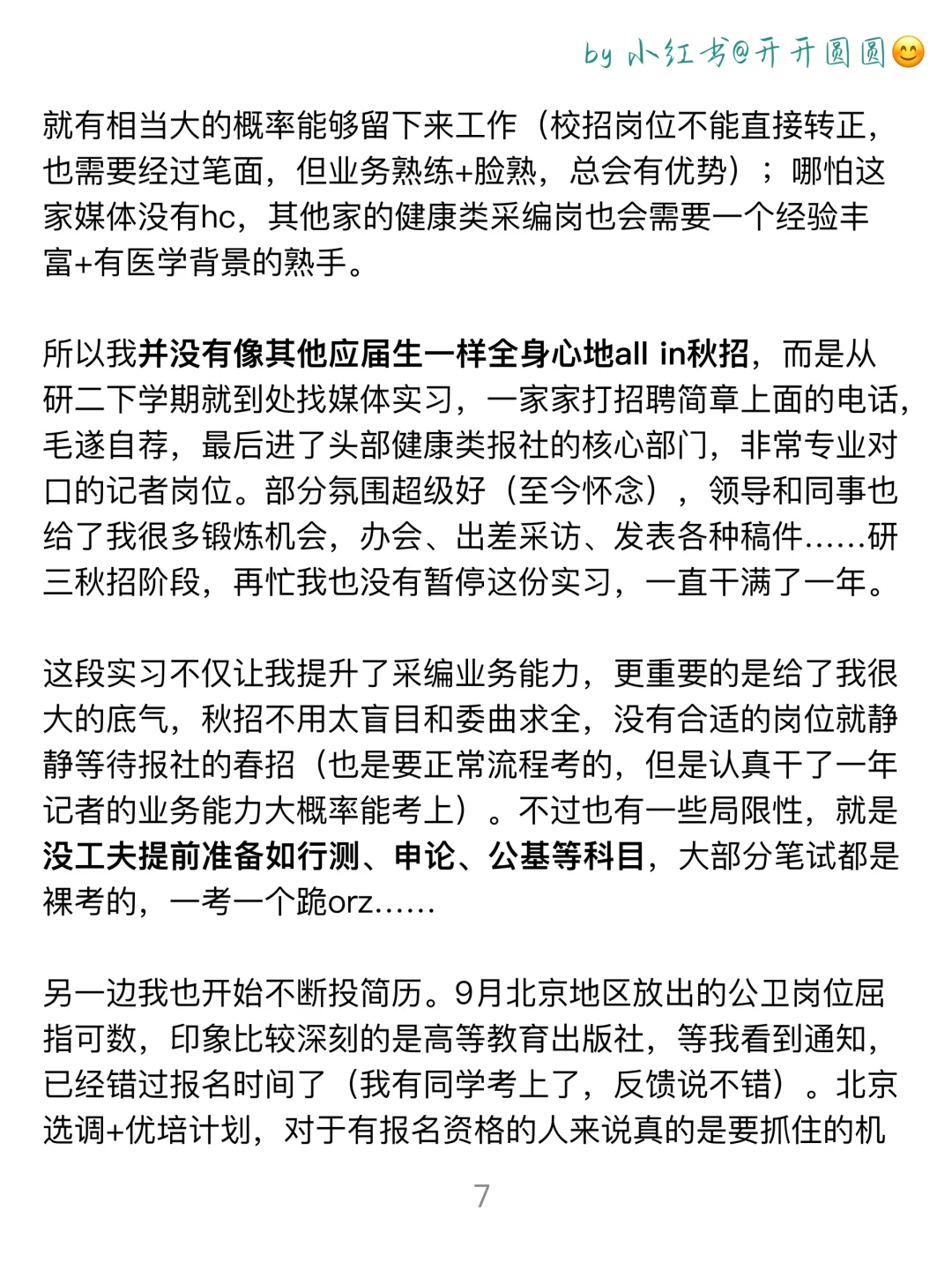 在剖析完自己之后,我觉得最对口的单位莫过于健康类媒体,所以在研二下学期就打了几家头部媒体的招聘电话问下一年的计划,并且毛遂自荐,找到一家报社实习