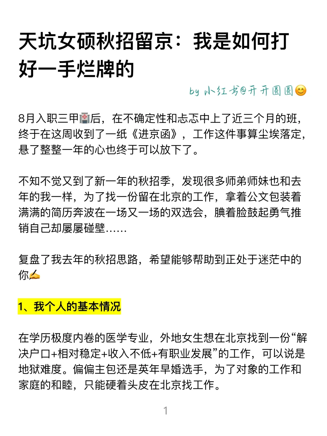 入职三甲🏥快3个月了,上周终于拿到了进京函。秋招的一幕幕像放电影一样浮现在眼前又是一年秋招季,看着学弟学妹们在偌大的北京忙碌穿梭,整理出了我的秋招经验,希望帮到大家