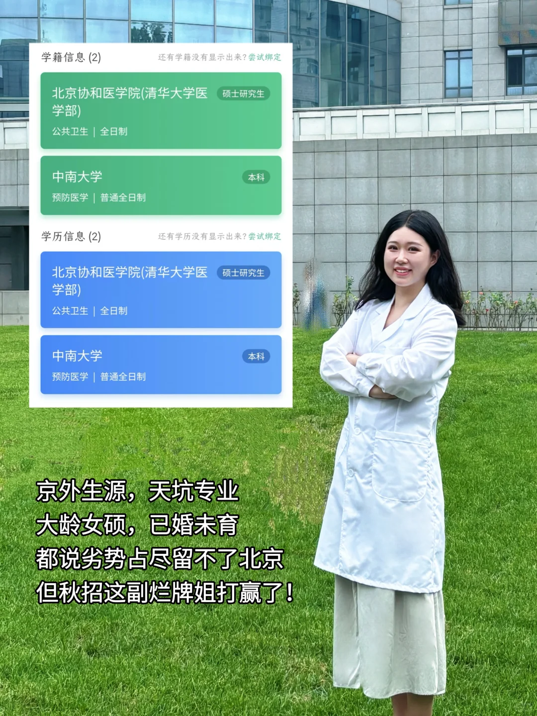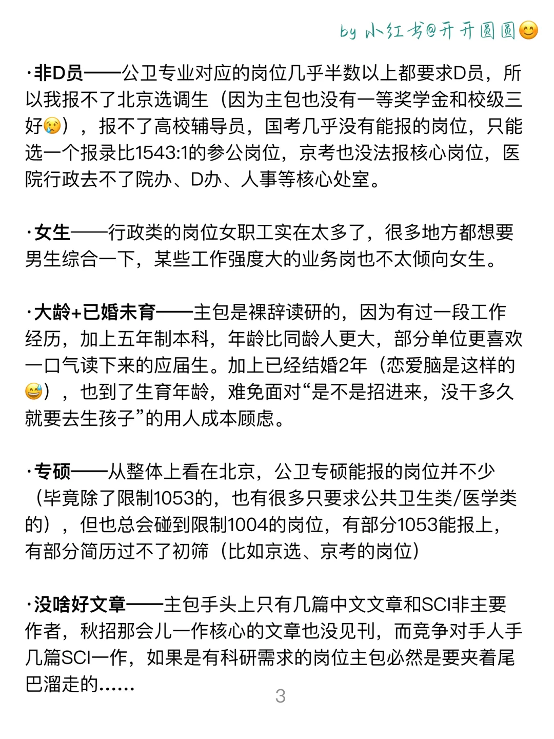 我的劣势主要集中在硬件层面:京外生源、公卫专业、硕士非博士、非D员、女生、大龄➕已婚未育、文章不好…尽管无法改变,但起码要做到心中有数,避免做太多无用功