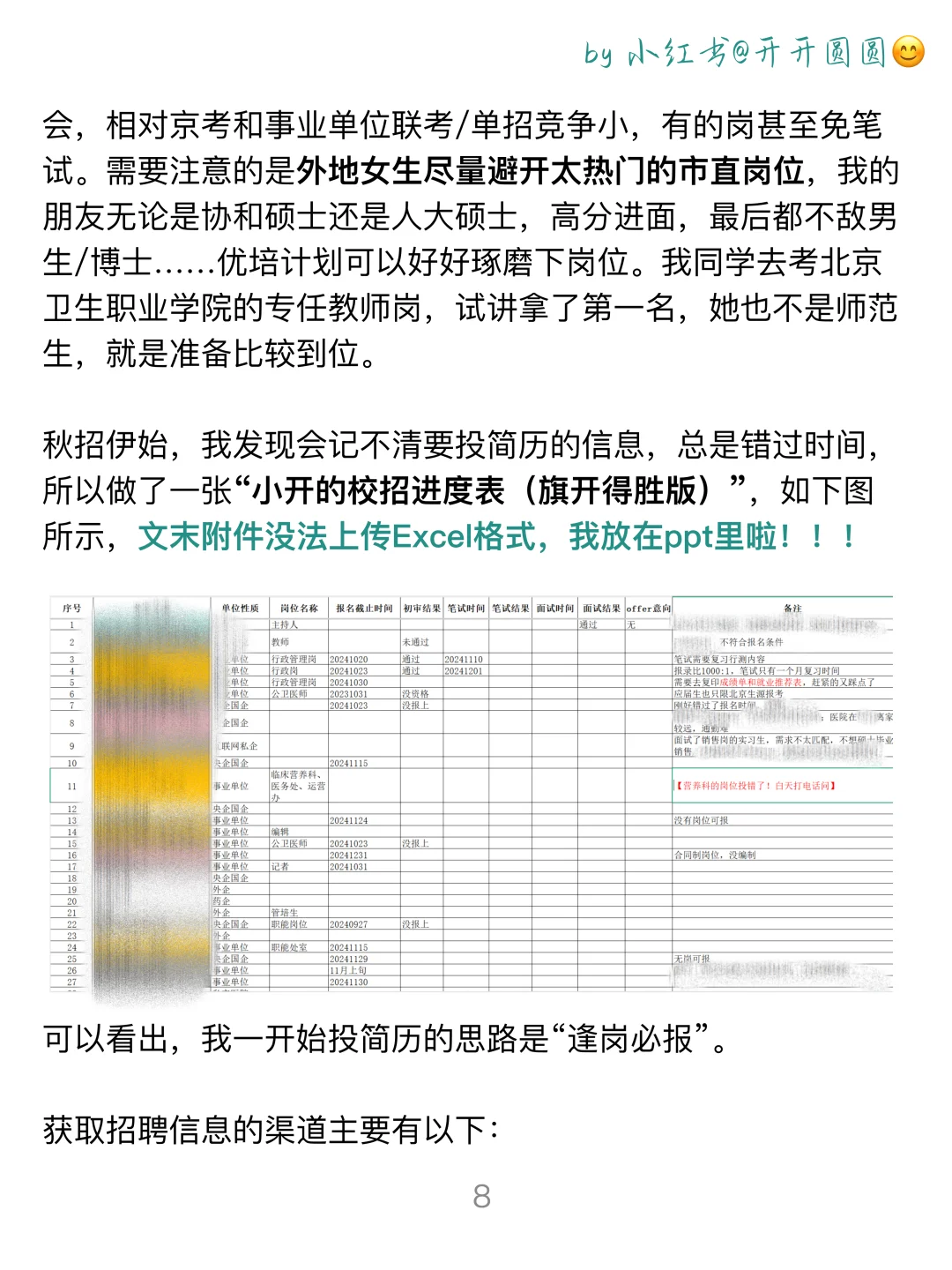但另一边我也没放弃其他类型的岗位,从9月开始只要公卫/医学类能报的单位我都投。为了不错过关键信息和重要的ddl,我还做了一个详细的“校招进度表”(详见文末附件)