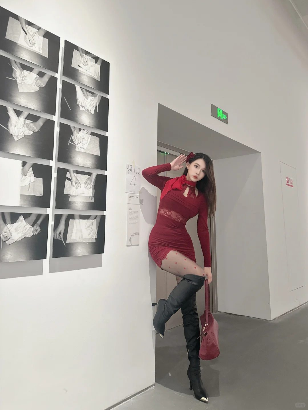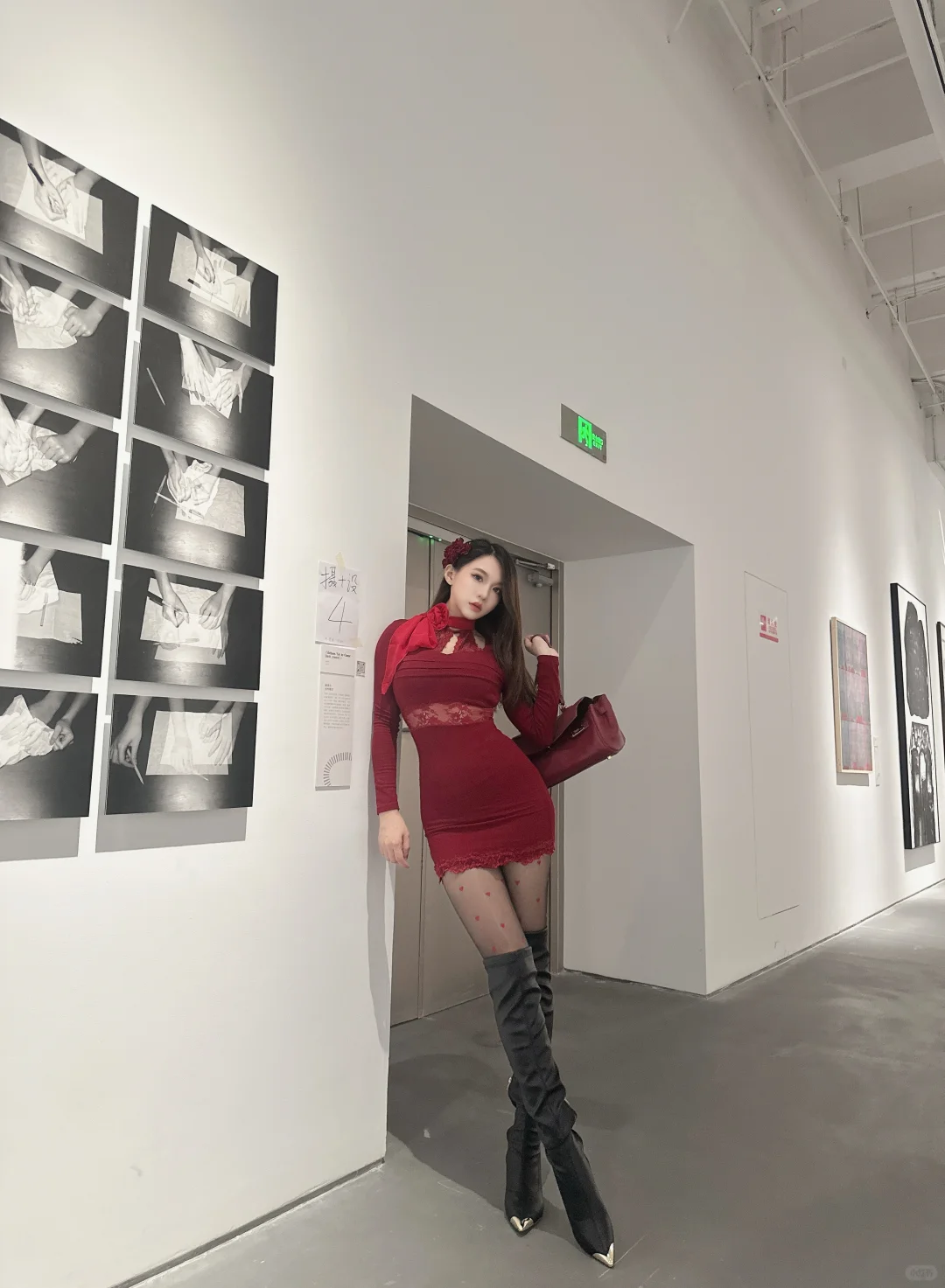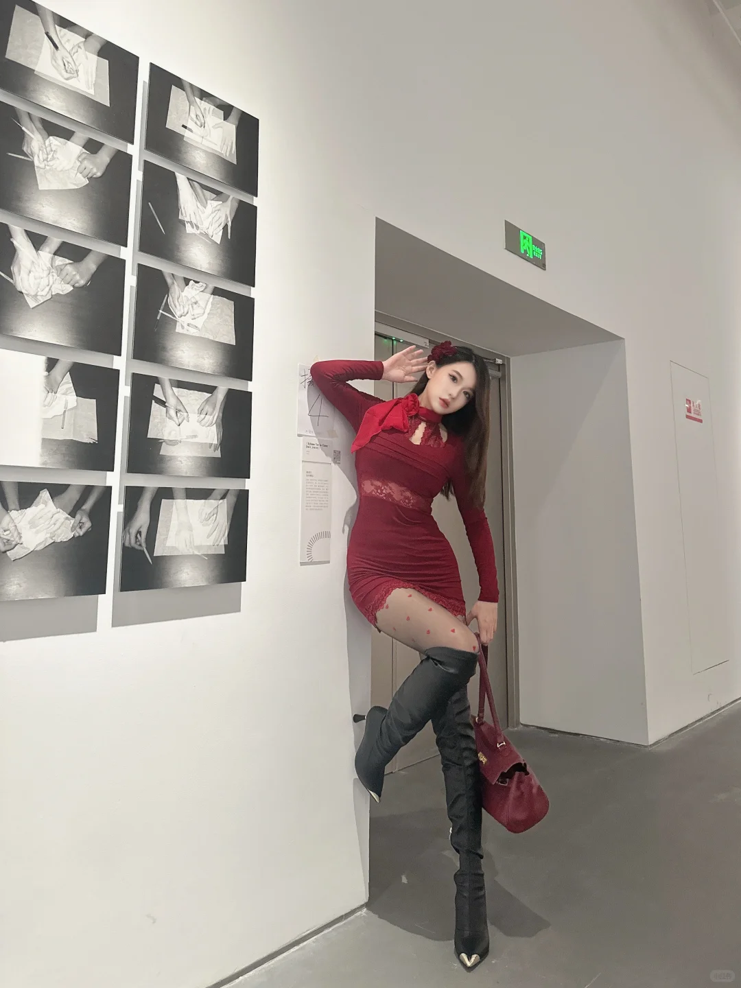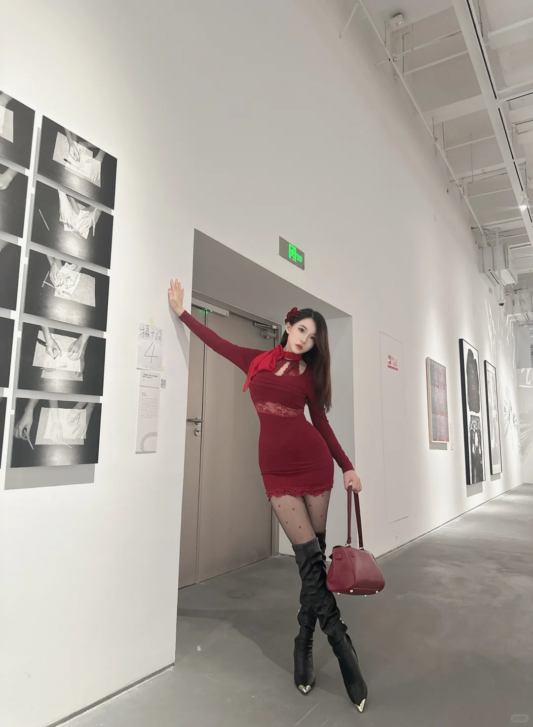 红色包臀裙/过膝靴:御姐约会穿搭♥️