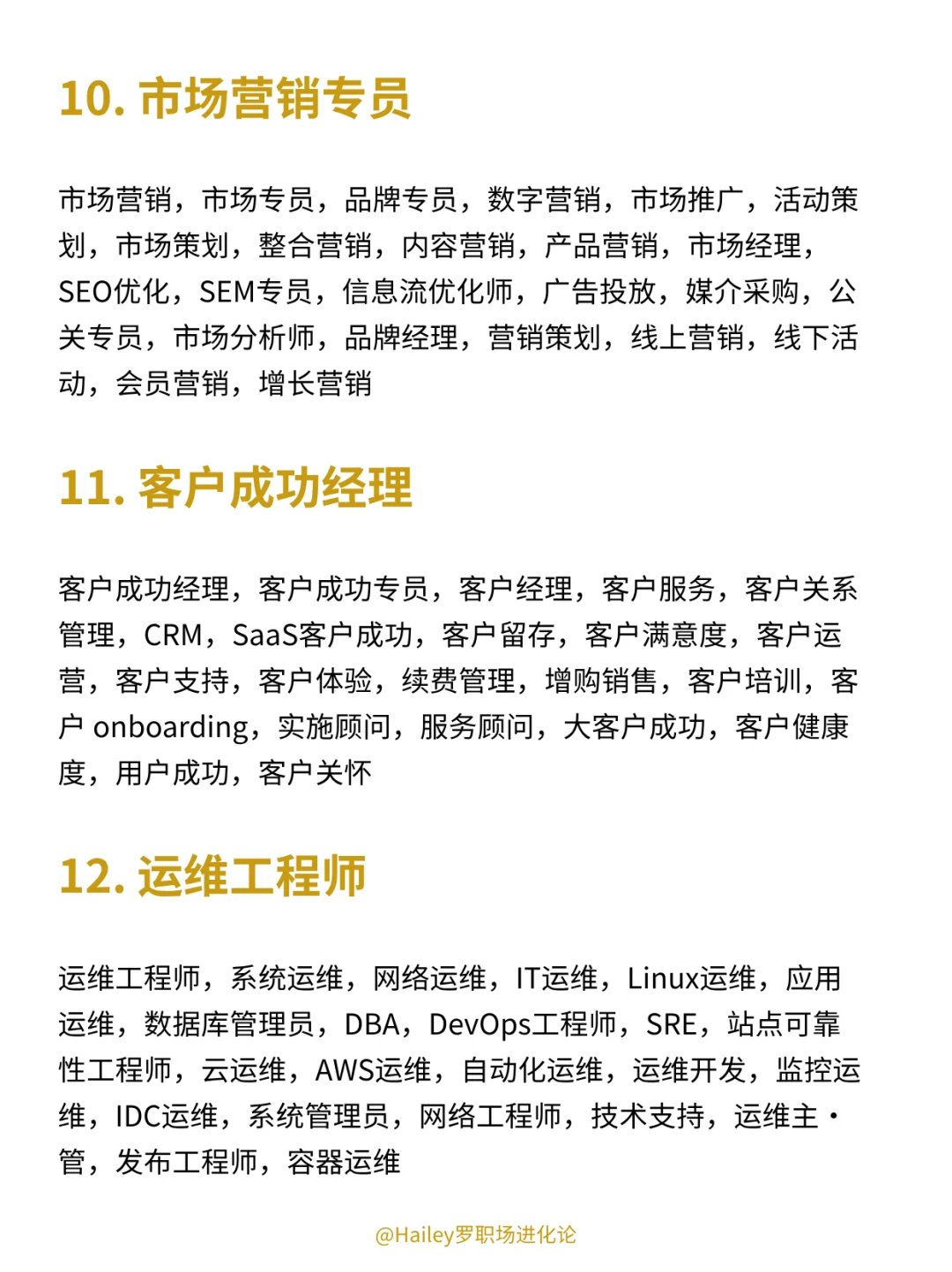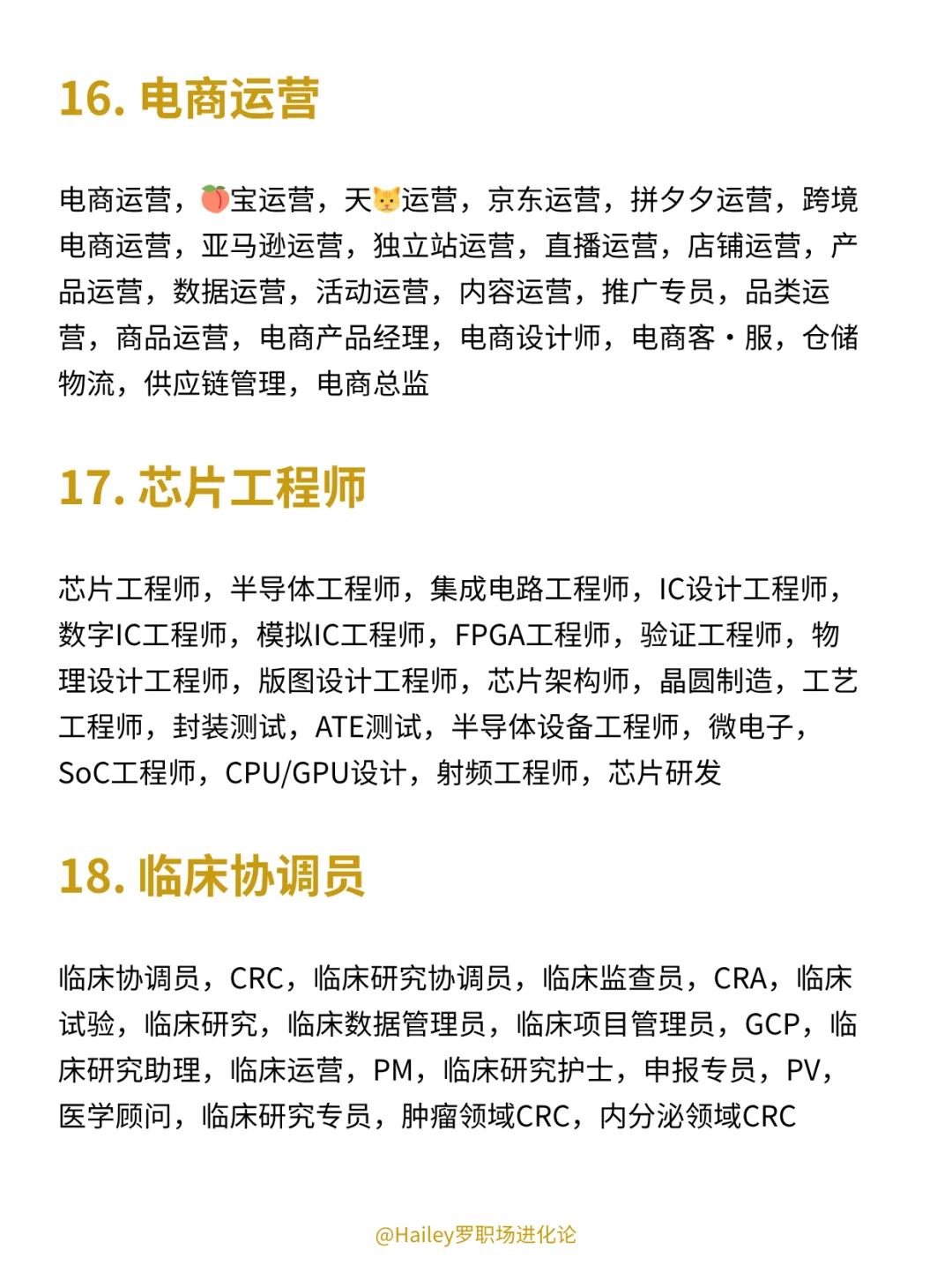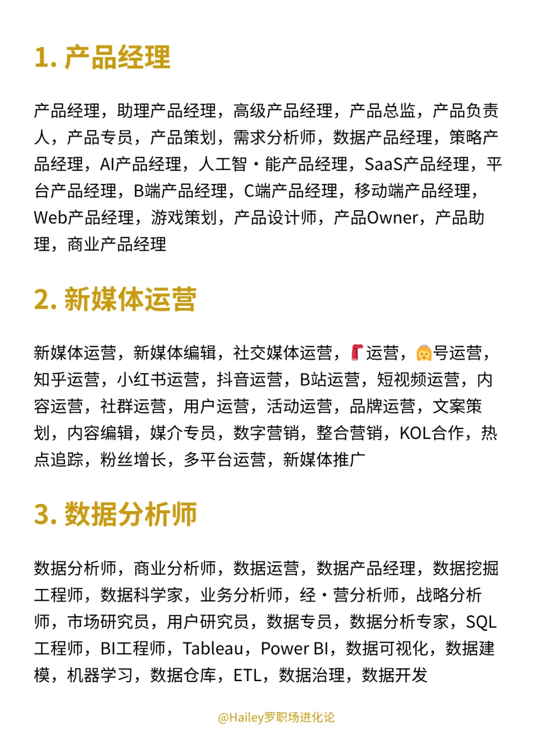如果这里没有你的目标岗位,或者想了解某个方向的更详细关键词,欢迎留💬言,看到都会回复~