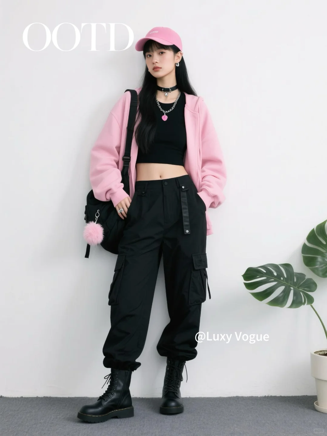• 粉黑搭配,在酷感中融入粉色的甜美