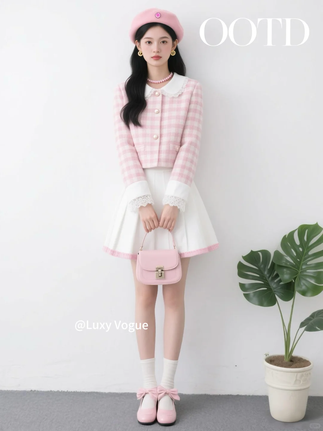 • 粉白格子小外套,尽显少女心