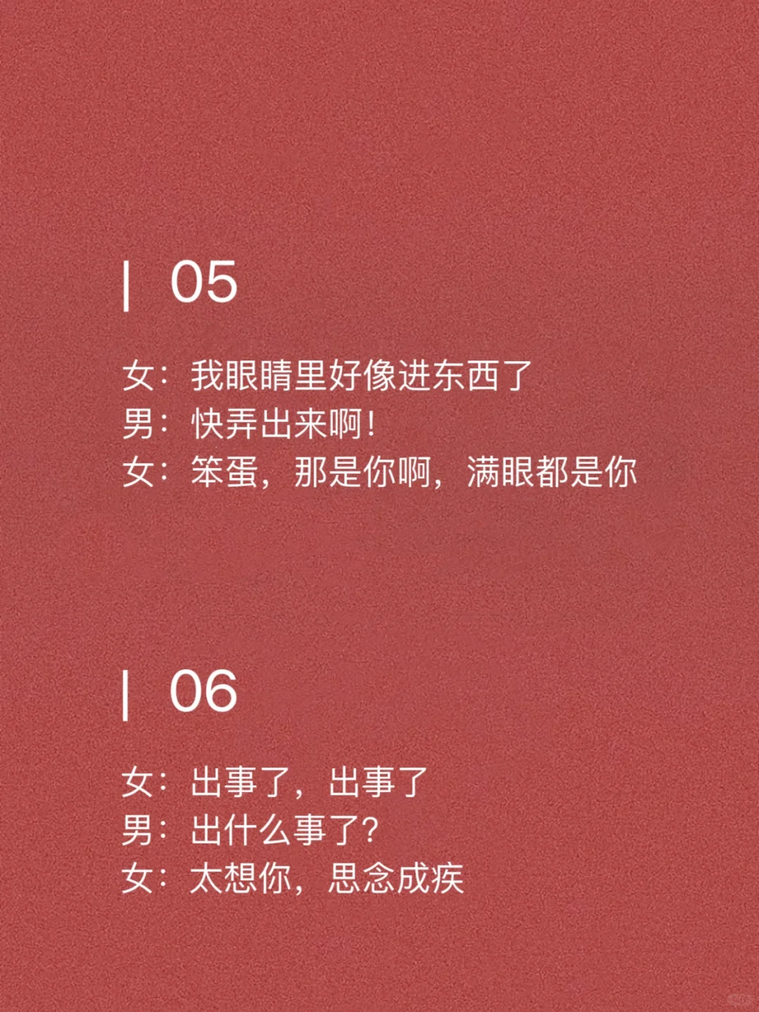 #撩汉小技巧 #恋爱技巧 #恋爱小技巧 #撩对象 #撩男友 #恋爱日常#恋爱 #土味情话 #土味情话撩人 #文案分享 #我会被文字打动 #浪漫生活的记录者 #调戏男朋友 #撩汉 #情侣 #情侣日常聊天 #情侣日常对话 #高情商撩妹 #文案分享 #今日文案 #文字素材分享