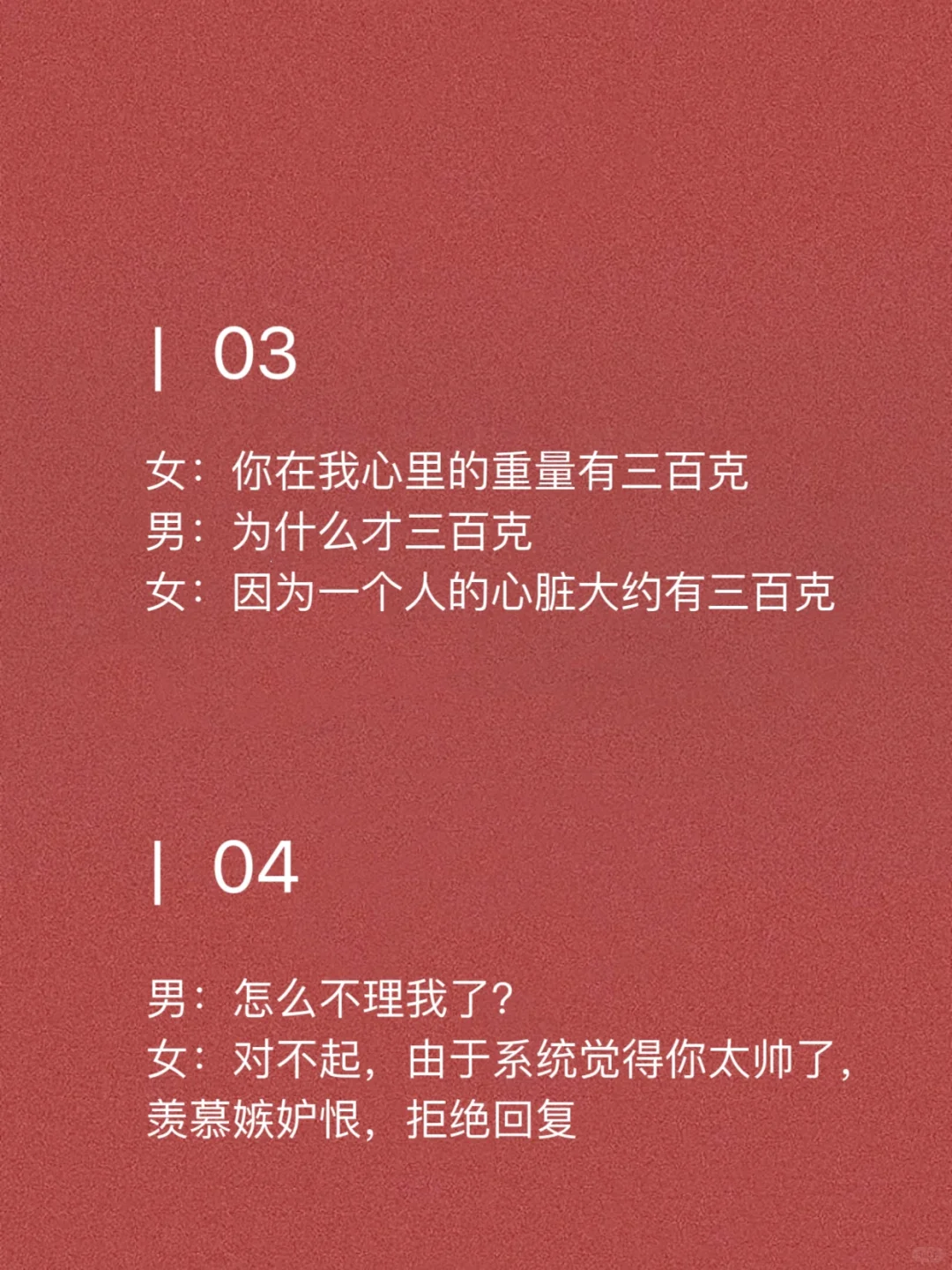女:对不起,由于系统觉得你太帅了,羡慕嫉妒恨,拒绝回复