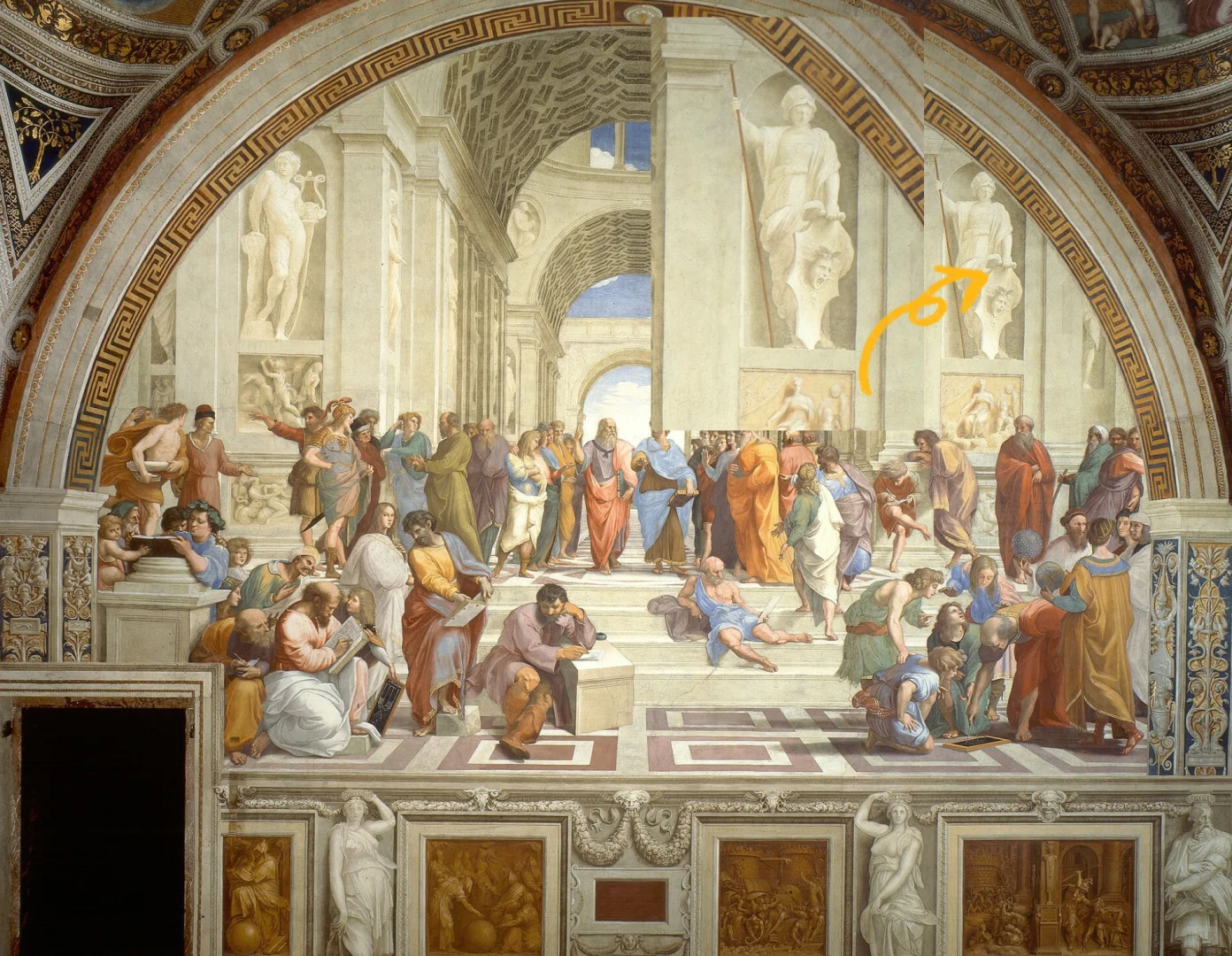 3. 拉斐尔的《雅典学院》中她以Minerva之名出现(如图4)