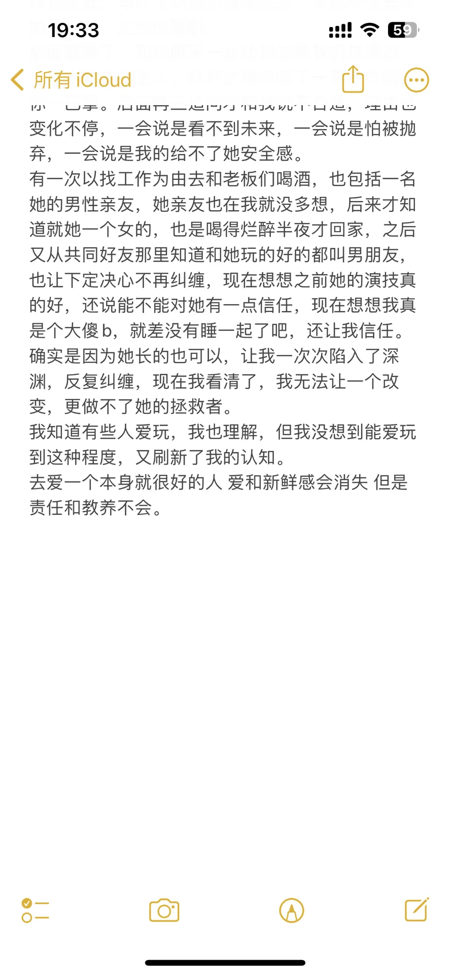 有一次以找工作为由去和老板们喝酒,也包括一名她的男性亲友,她亲友也在我就没多想,后来才知道就她一个女的,也是喝得烂醉半夜才回家,之后又从共同好友那里知道和她玩的好的都叫男朋友,也让下定决心不再纠缠,现在想想之前她的演技真的好,还说能不能对她有一点信任,现在想想我真是个大傻b,就差没有睡一起了吧,还让我信任。