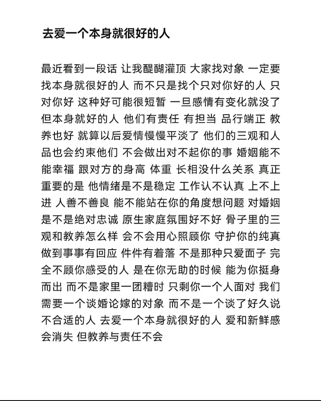 去爱一个本身就很好的人 爱和新鲜感会消失 但是责任和教养不会。