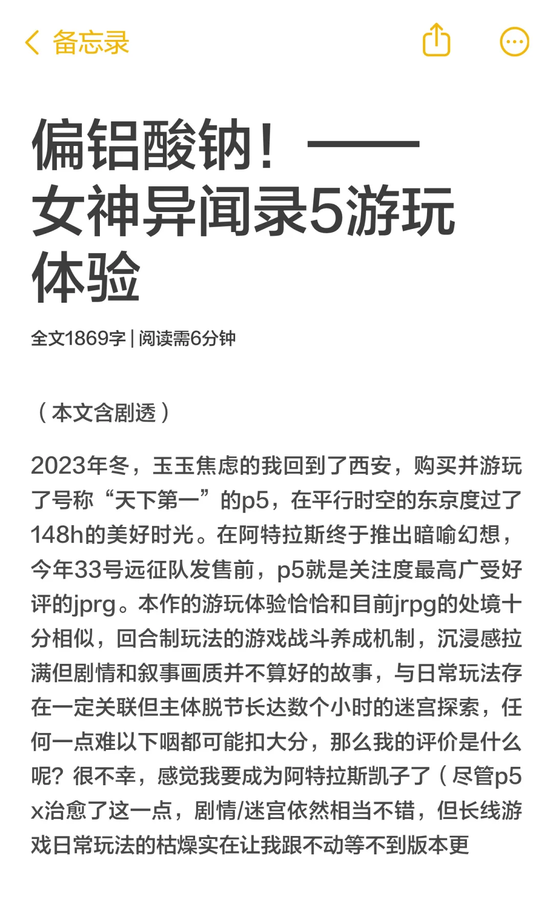 偏铝酸钠!——女神异闻录5游玩体验