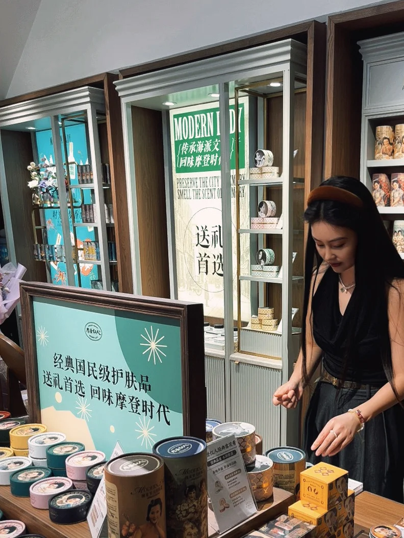 摩登红人在北京南锣鼓巷很火,店内好多好用的雪花膏,味道都特别温柔好闻。