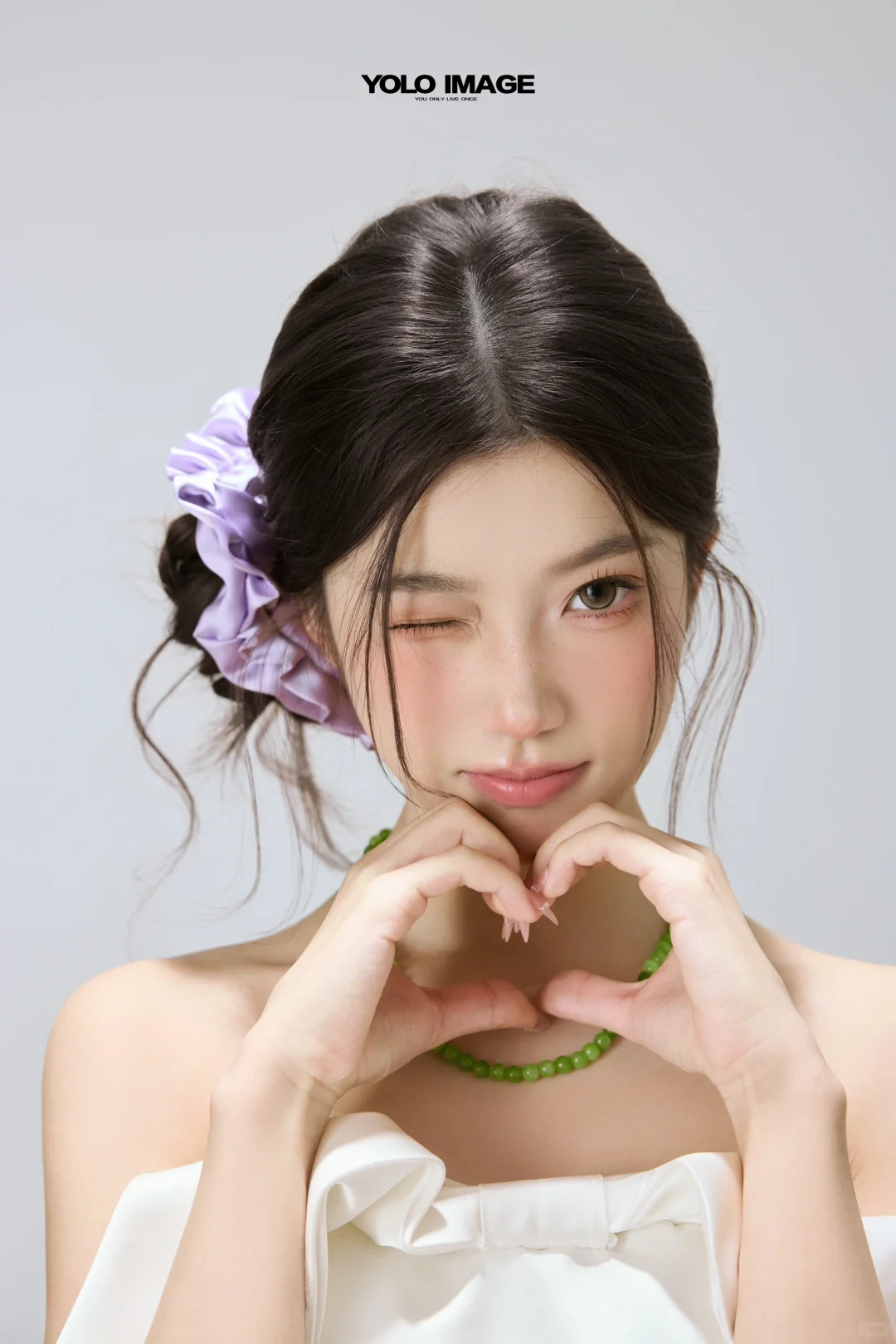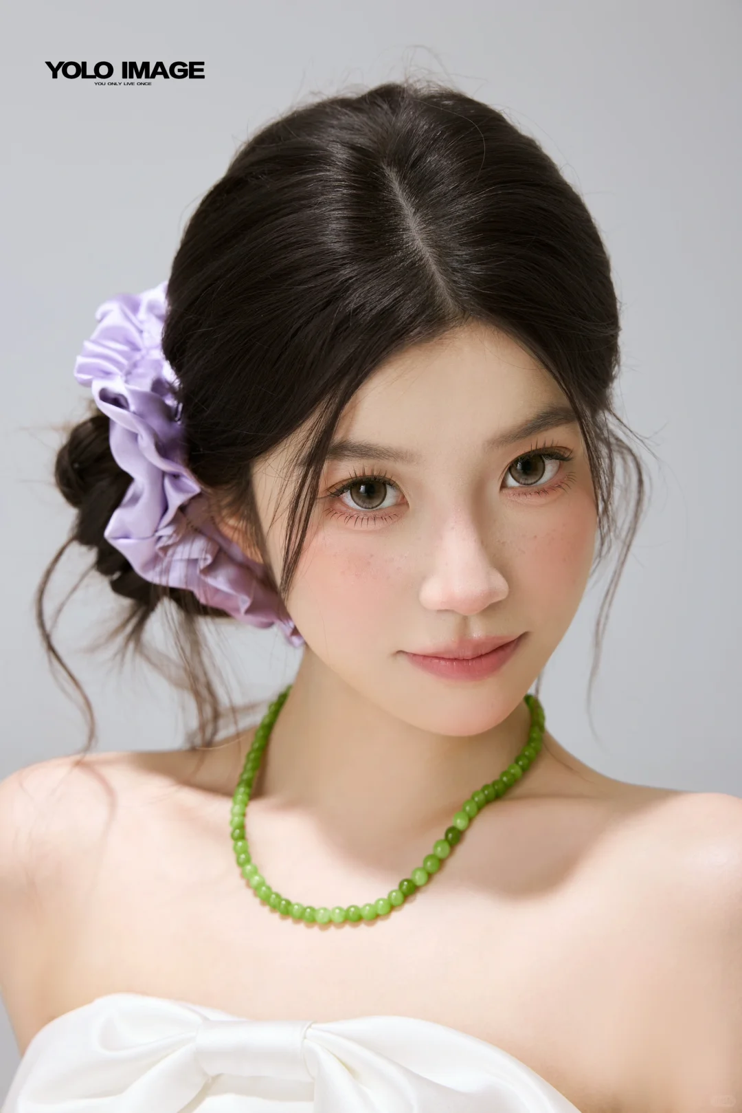 精致盘发搭配温柔紫色发饰,俏皮吸睛,清新又灵动