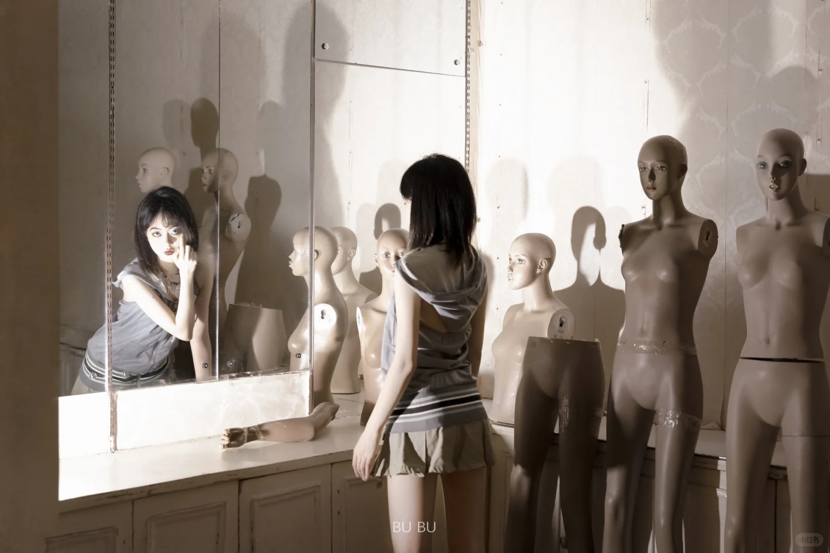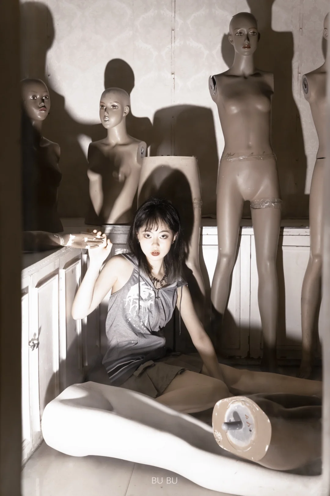 在废弃的出租店的角落里发现的破碎模特们,满身灰尘,我们把它们搬出来一一站好,这次它们都是主角