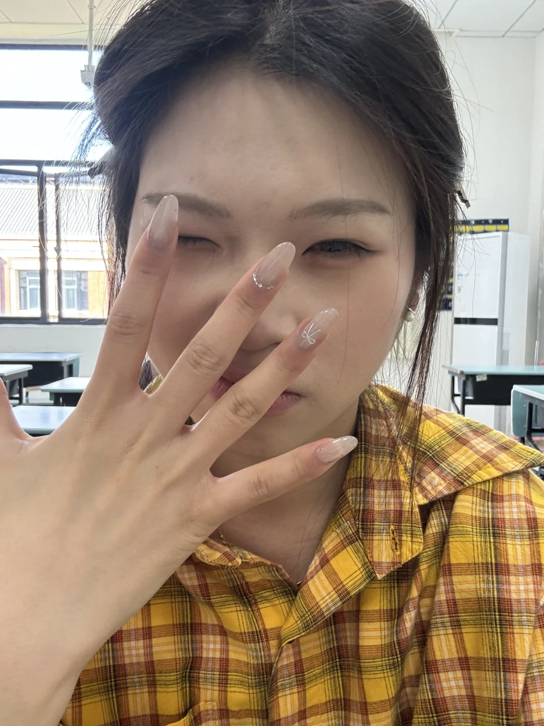 化妆已经看不出来闭口了!只有小印子了! 五一可以美美过喽~~~顺便秀一下我周一做的美甲💅