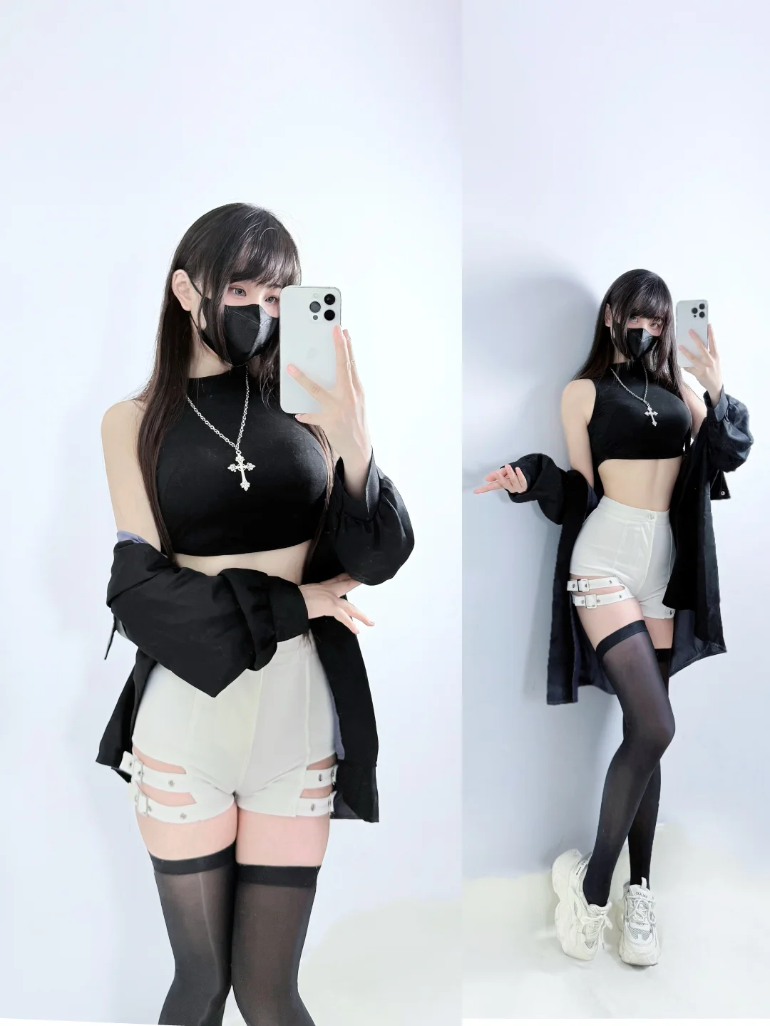 参考一个画师角色的穿搭,腿太粗直接勒三层