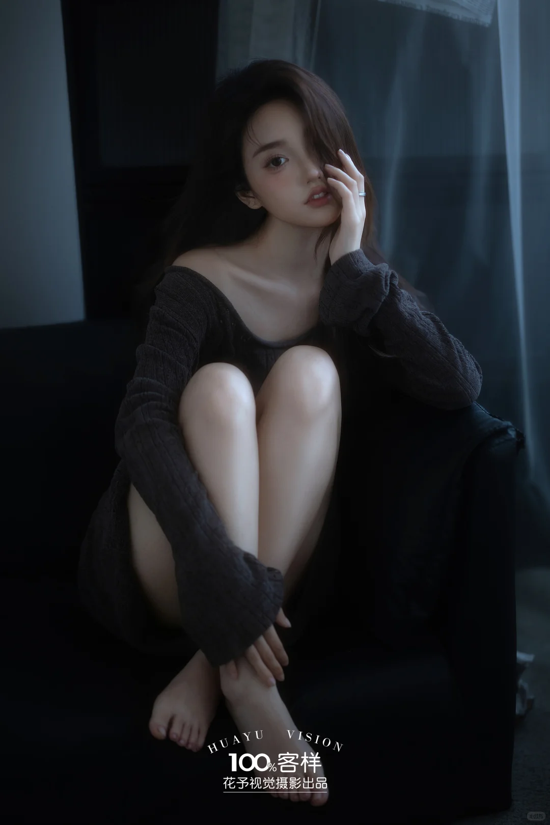 破碎感真的被这套黑毛衣拉满了!情绪风写真