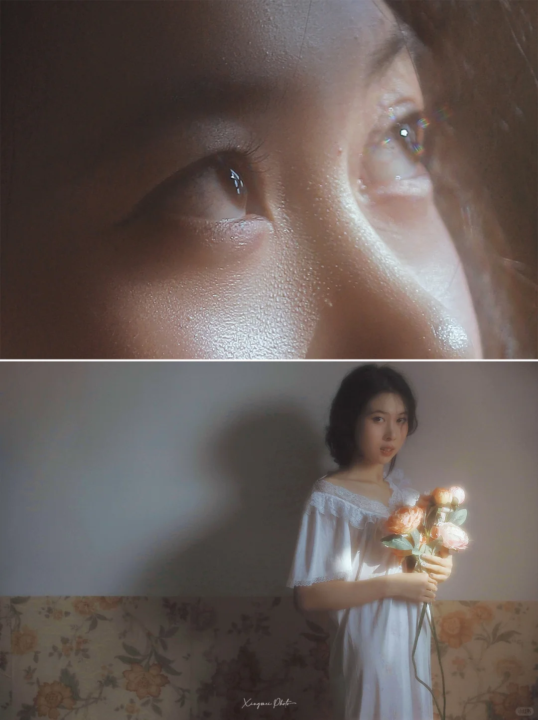 🌈第三,可以多拍摄细节,眼睛、锁骨、脚等,会让整组图看起来构图丰富有氛围感。如果场地里有镜子可以利用镜子拍镜子里的人,会更有故事感和视觉冲击力。
