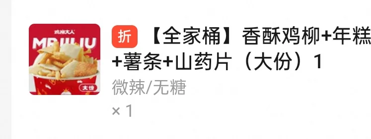 晚上点了外卖,鸡柳大人,餐二没有测,餐三5.8