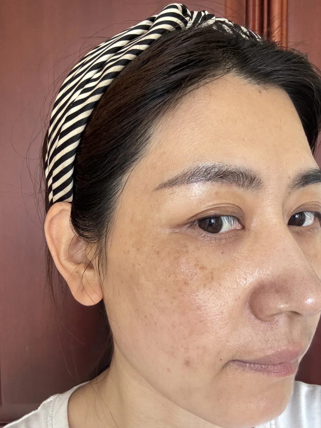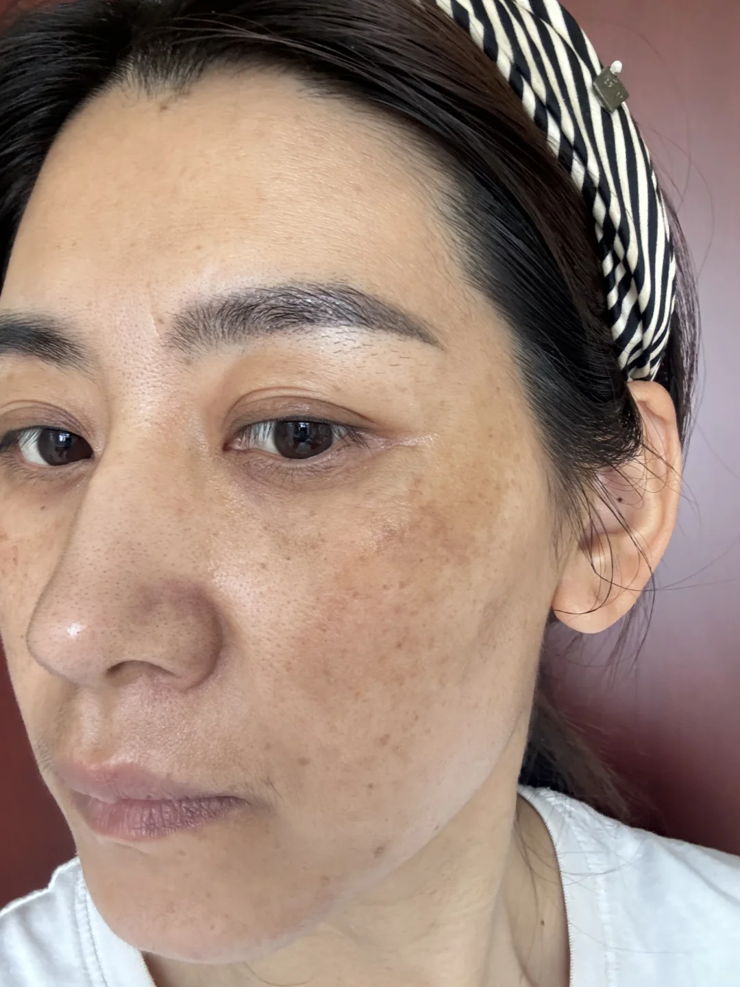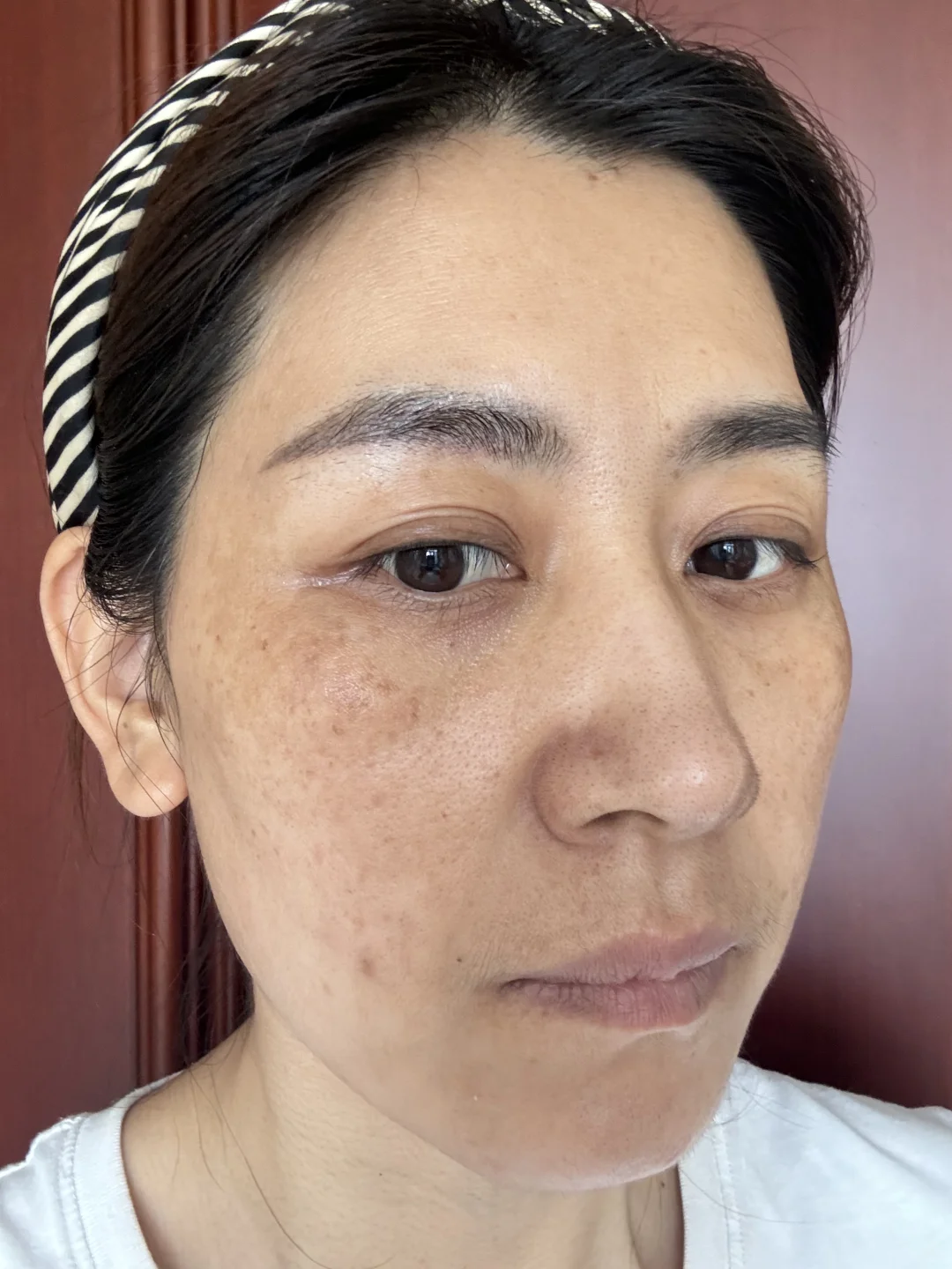 苹果原相机拍摄,颧骨两侧斑很明显,肤色也不均匀,坚持打卡14天看看效果