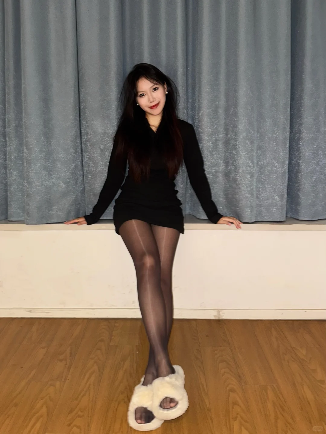 毛绒拖鞋+黑丝+包臀裙 秋冬氛围感拉满啦!!