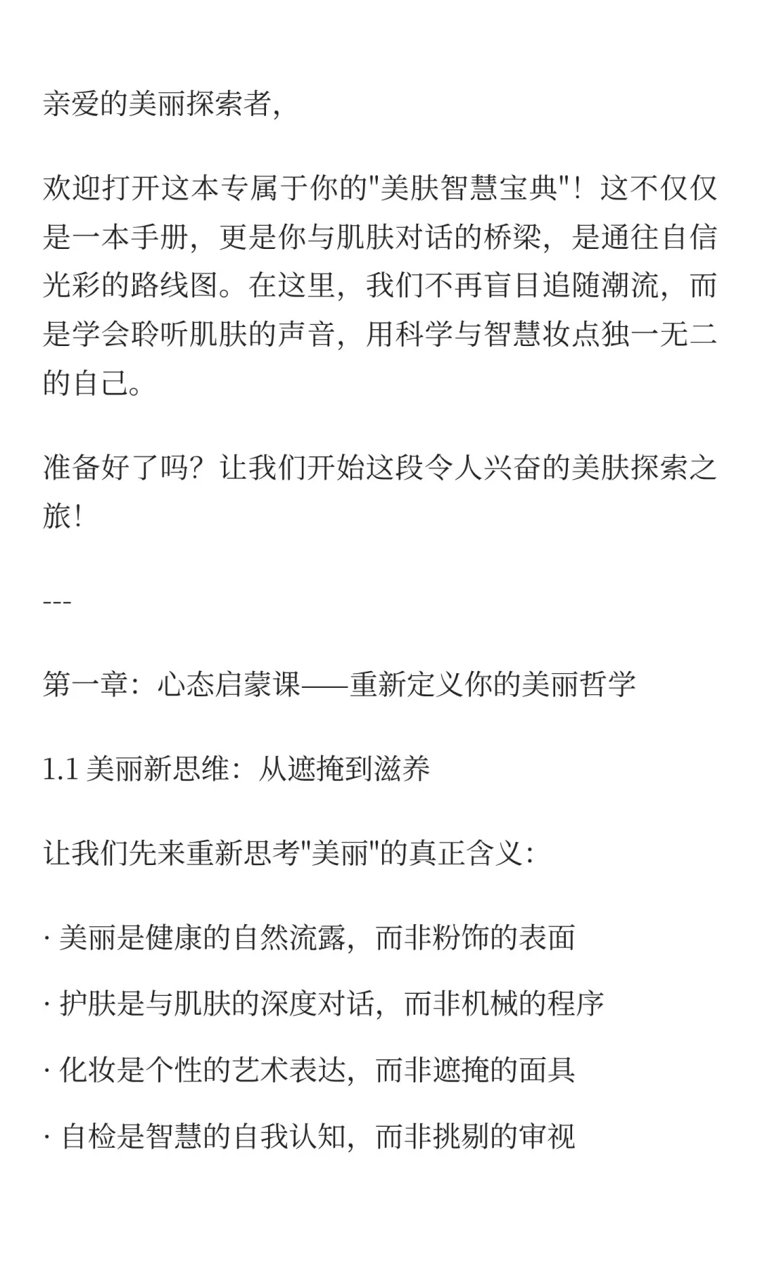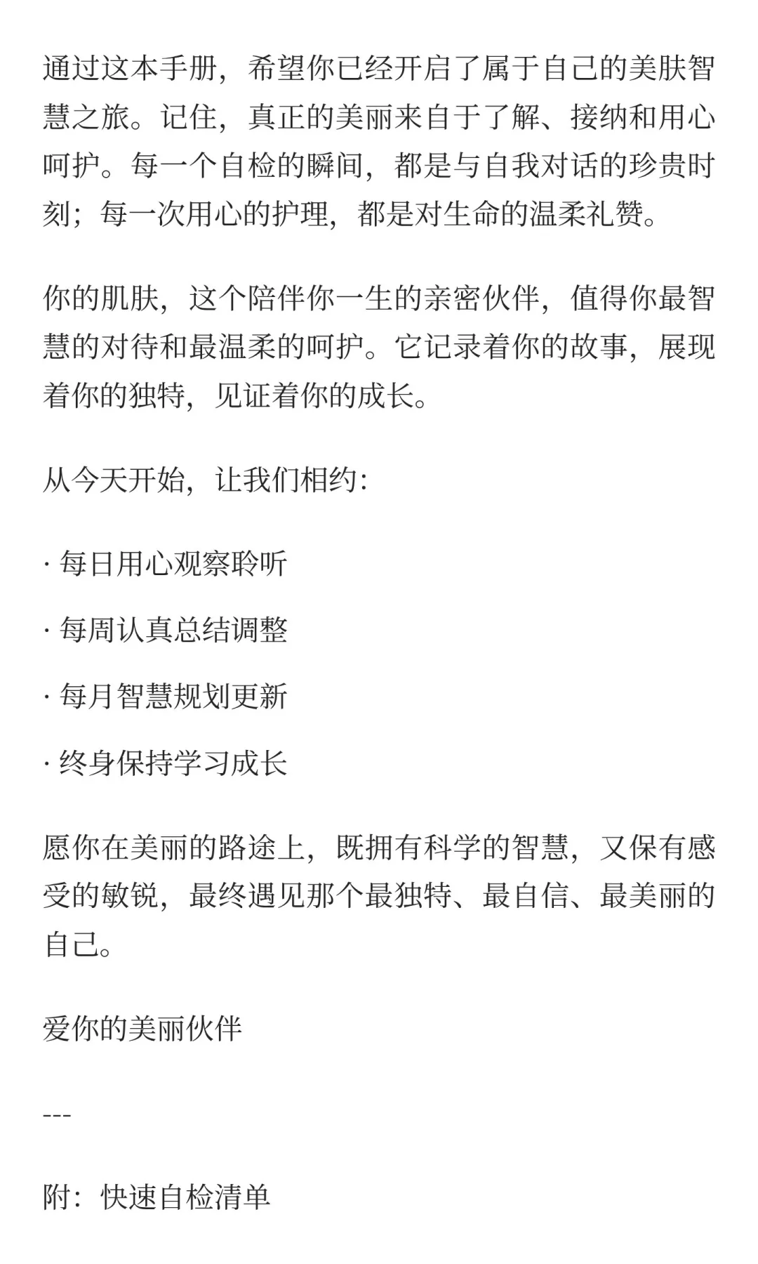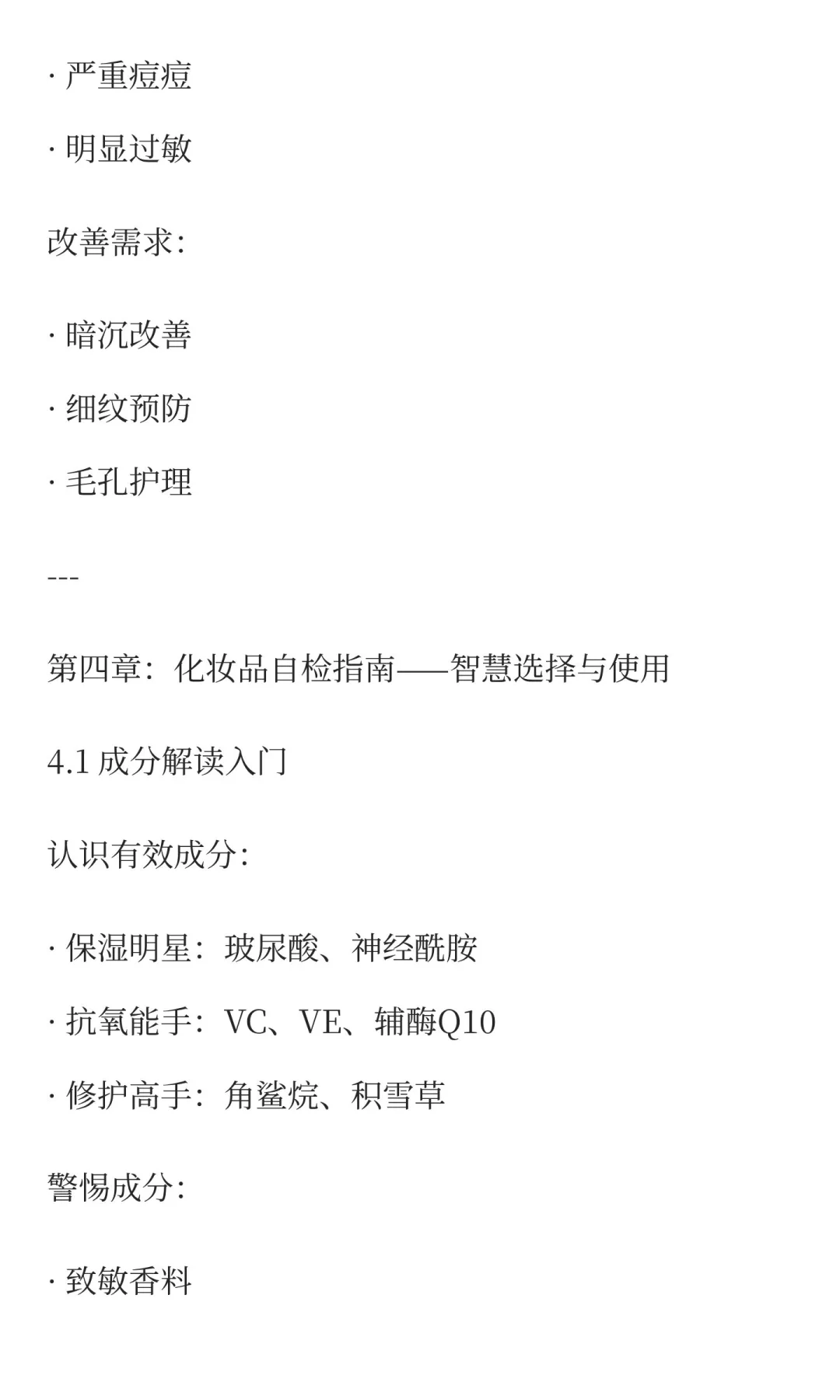 这本“美肤智慧宝典”教你聆听肌肤,科学护肤,打造自信光彩。从心态到肌肤类型,再到自检与选择,提供全面指南,助你找到适合自己的护肤方案,遇见最美的自己。