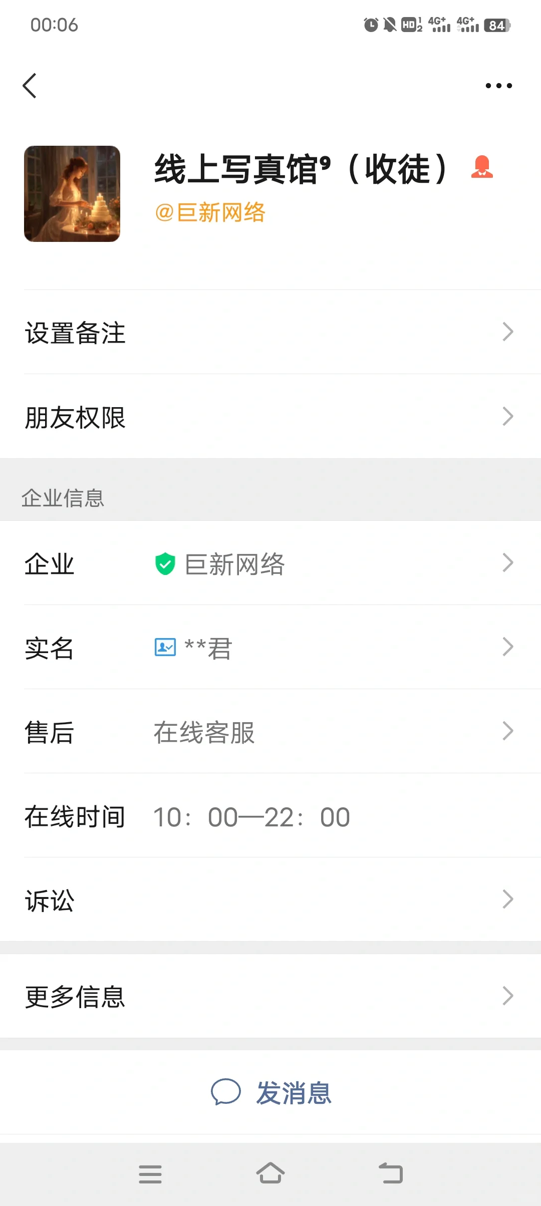 家人们,这种扣图再P图的写真真的不要去弄,白瞎几十块钱,还得不到好的东西,这图P的跟我本人一点关系都没有,当时就不应该贪图小便宜去搞一个什么线上写真,写真还得去店里才行。当时是刷dy刷到他们这家店,然后看评论区都说满意的,我就加了店家的wx(P4),想着试试看,结果心都碎了