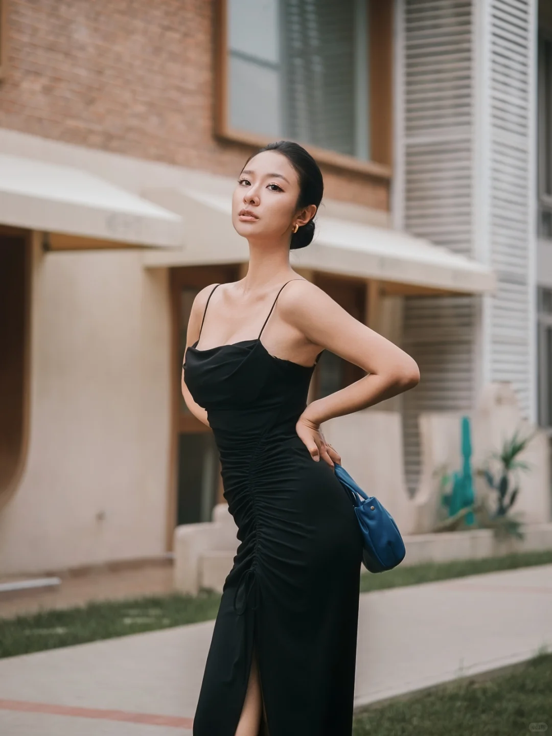 慵懒松弛感直接拿捏,咖啡杯旁随便一坐都是“富家千金逛gai”的既视感~ 配一双凉鞋,开叉处露肤度拉满,走路带风撩到心巴上!crush眼神就没离开过…包臀设计精准掐出腰臀比,走路时开叉处若隐若现的小腿线条,纯欲又性感。