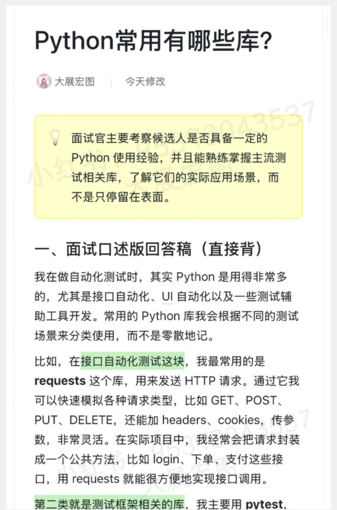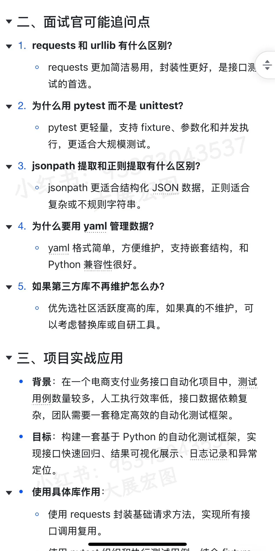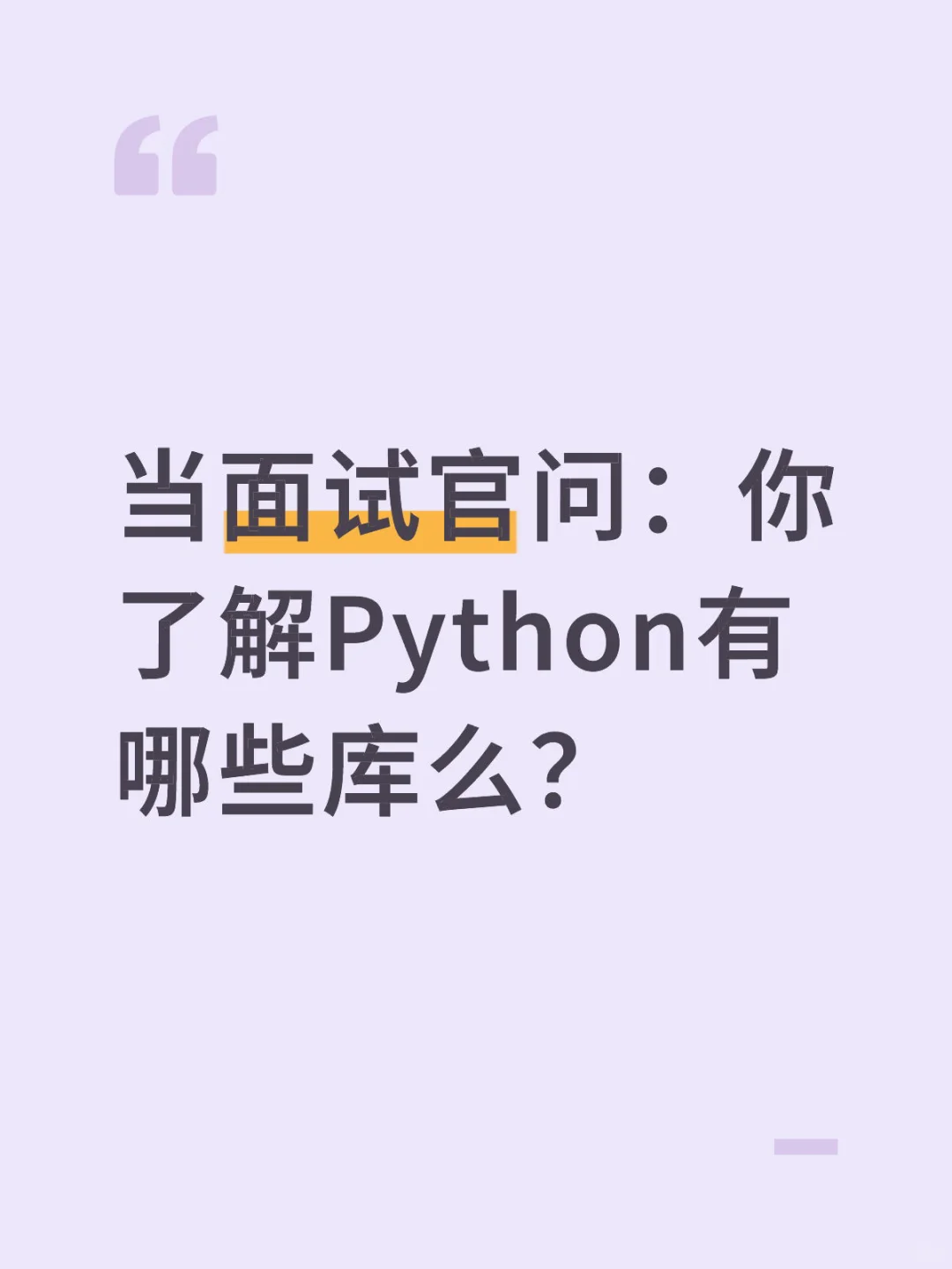 面试官主要考察候选人是否具备一定的 Python 使用经验,并且能熟练掌握主流测试相关库,了解它们的实际应用场景,而不是只停留在表面。