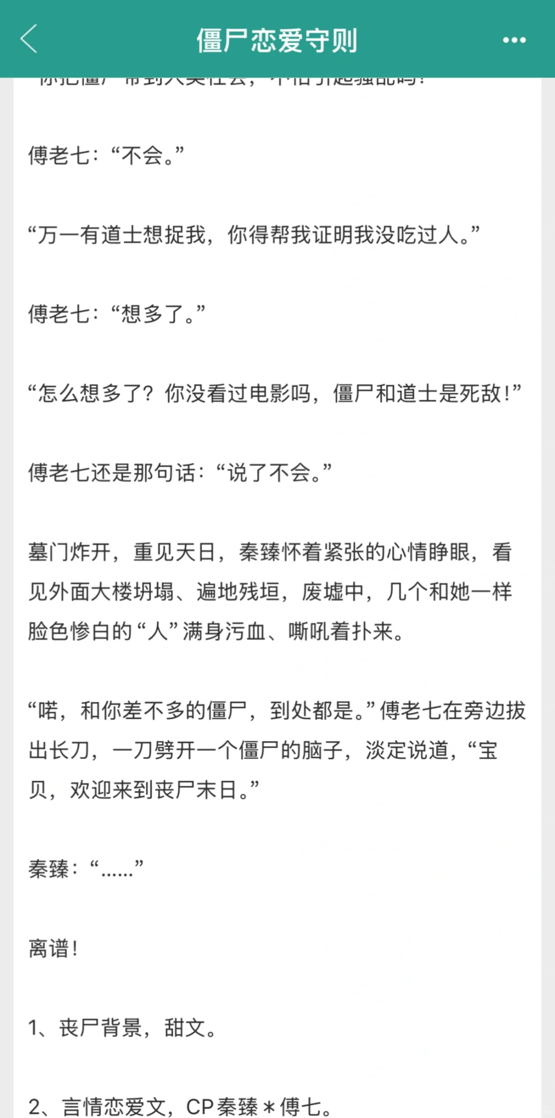 男主是真的嘴毒所以每次都被僵尸妹宝打哈哈,乐此不疲的犯贱乐此不疲的被打(这不是爱这是什么!但讲道理男主真的蛮苏的哈哈,特别是叫女主宝贝的时候我怀疑你在撩人…