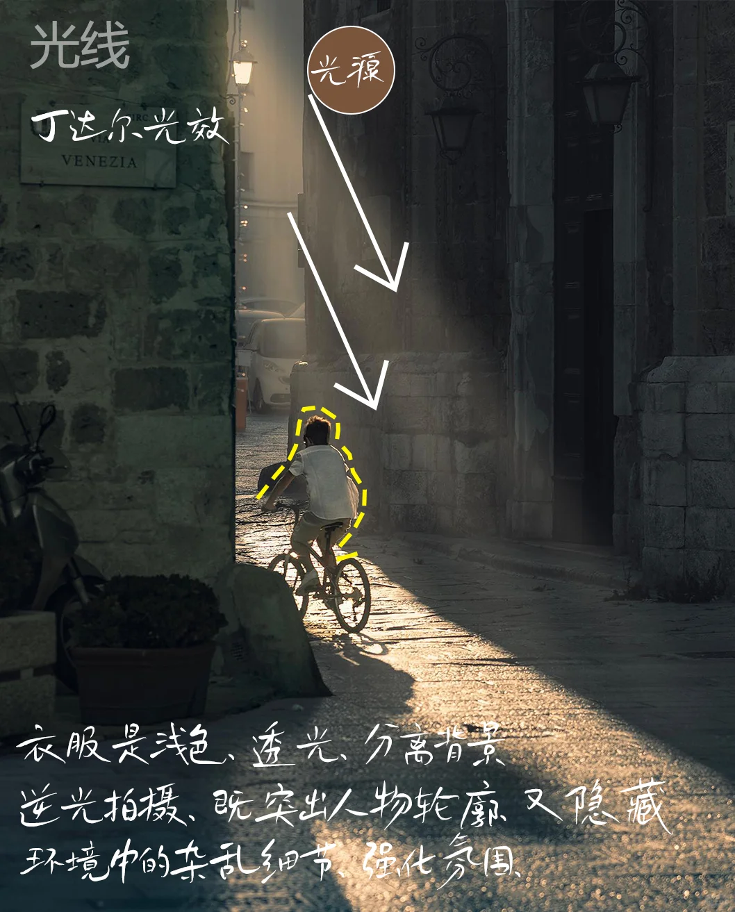 光线:清晨(逆光),丁达尔光,突出人物轮廓,又隐藏环境中杂乱的细节,强化氛围。
