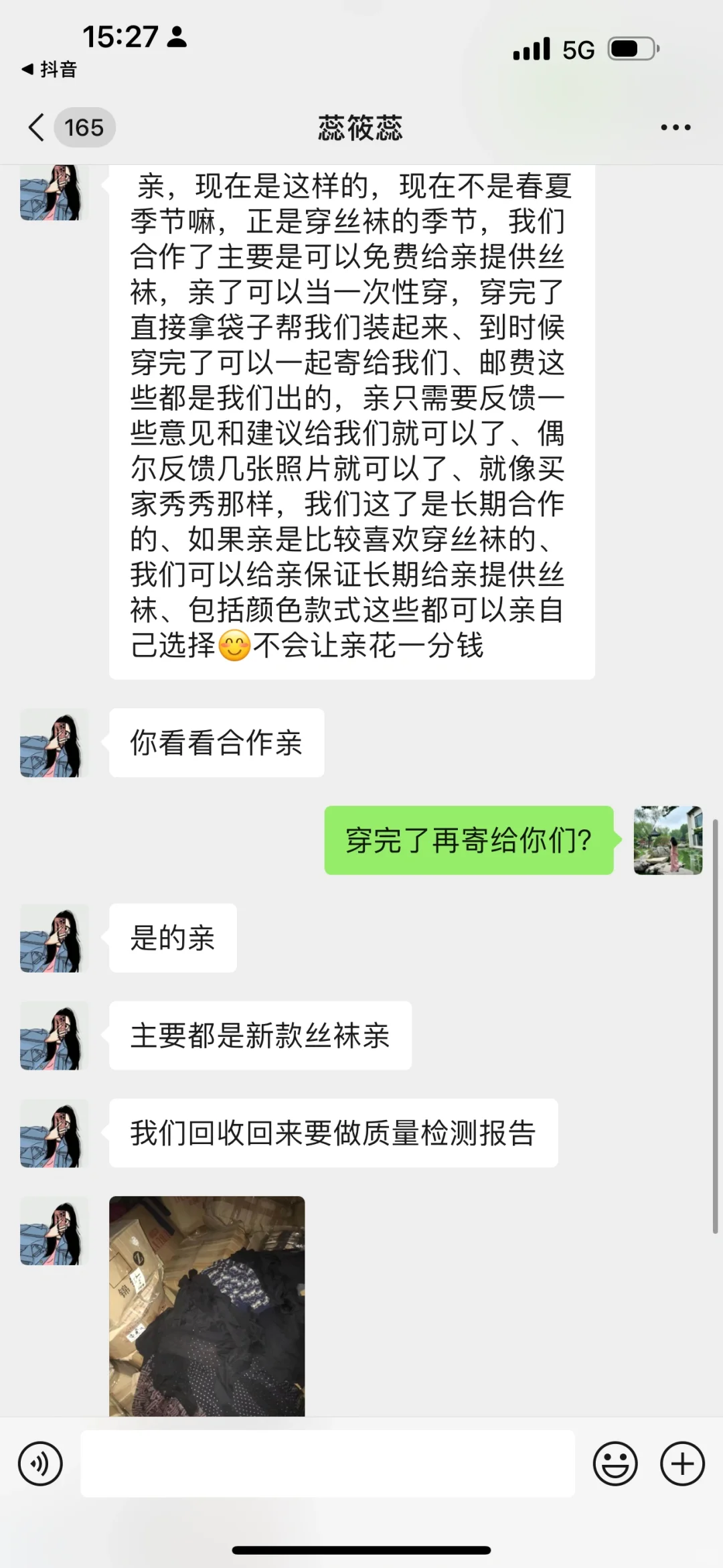 打着某🍑商家名号找我合作,加上后和我说穿完丝袜要寄回去,这不妥妥骗原味吗,女孩子们小心