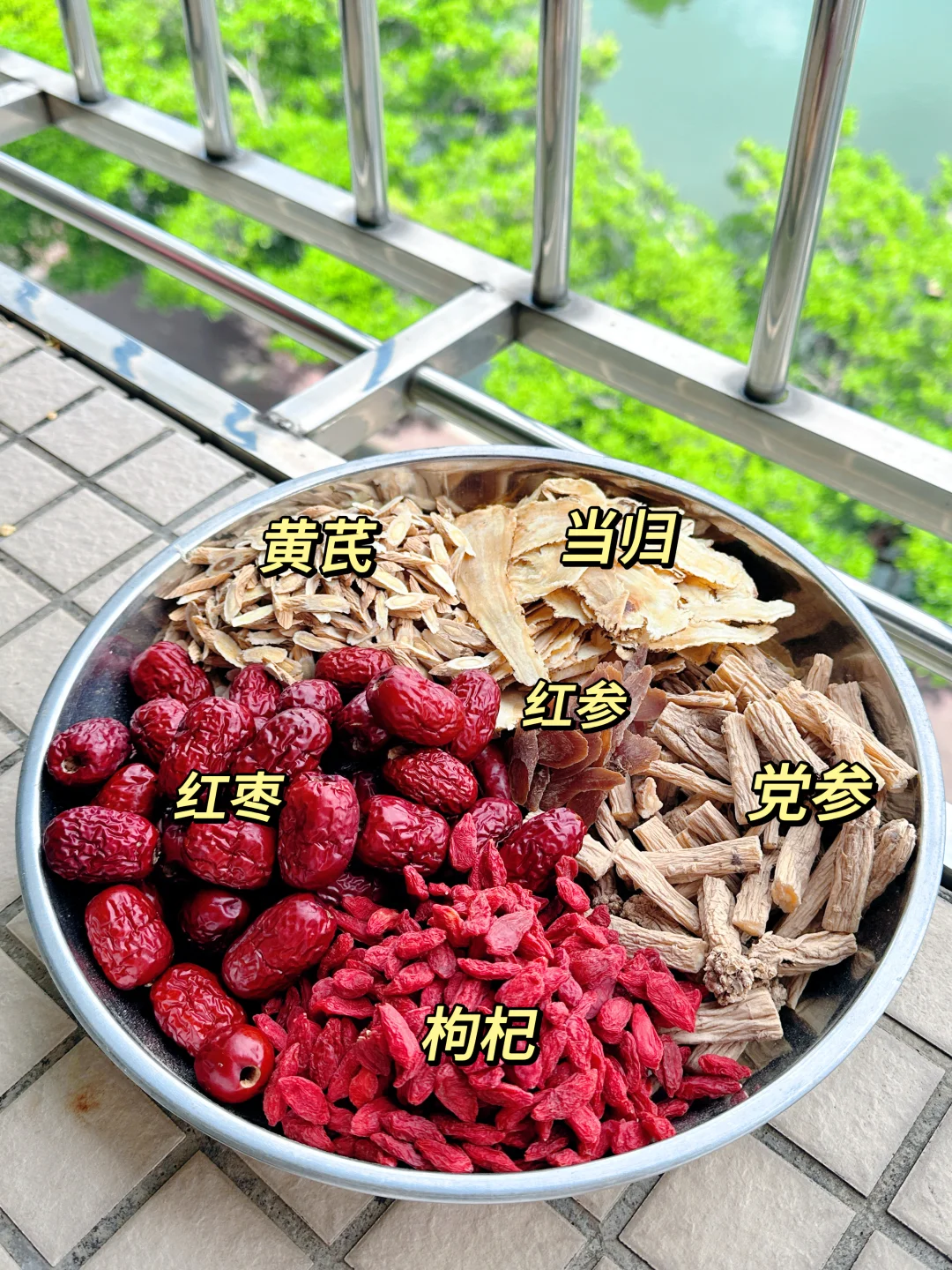 泡酒配方:白酒8斤(50度)、党参450g、黄芪200g、当归120g、枸杞350g、红枣180g、红参5g(红参不用多,也可以不加)黄冰糖50-60g(看个人喜欢的甜度来,有些人喜欢喝甜一点可以多加;或者是不加糖,因为红枣泡久了也会有甜味;我个人喜欢微甜一些)